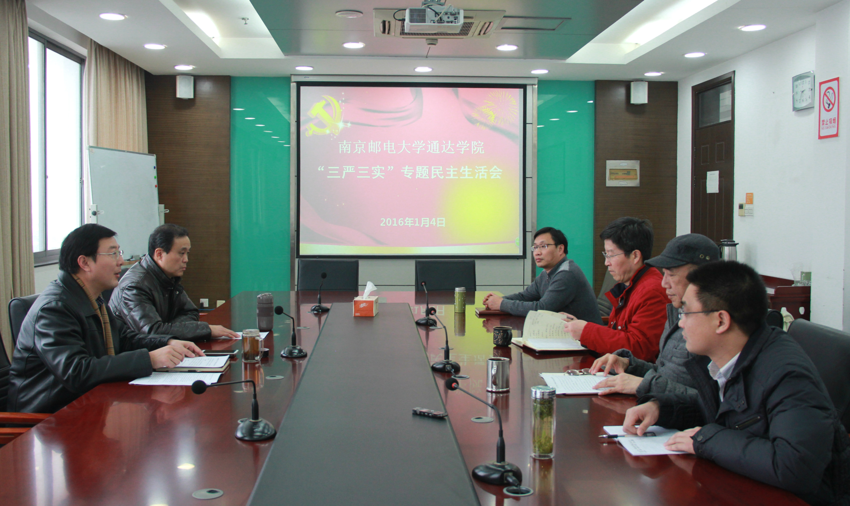 专题民主生活会上,院党委书记戴兆骏代表领导班子作对照检查,深刻分析了修身做人、用权律己、干事创业方面存在的问题与原因,并联系学院实际,明确提出今后的努力方向和整改措施。随后,戴兆骏书记带头作个人对照检查,班子成员分别对照“三严三实”的具体要求,逐一作对照检查发言。大家都本着对学院负责的态度,结合分管工作和自身实际,聚焦“不严不实”问题认真剖析, 从党性的高度深挖思想根源,提出今后努力方向。在相互批评时,批评者真诚真挚,被批评者诚恳虚心。大家在严肃和谐的气氛中坦诚相见、畅所欲言,达到了增强党性、增进团结、共同提高的目的。