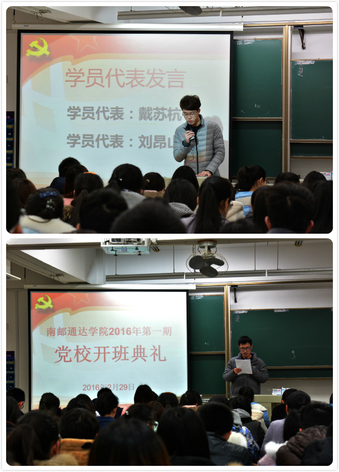 在开班典礼上,组织干事任建蕊介绍了培训计划与学习要求。培训班学员代表2013级通信工程专业刘昂山同学、2014级物流管理专业戴苏杭同学先后作了发言。