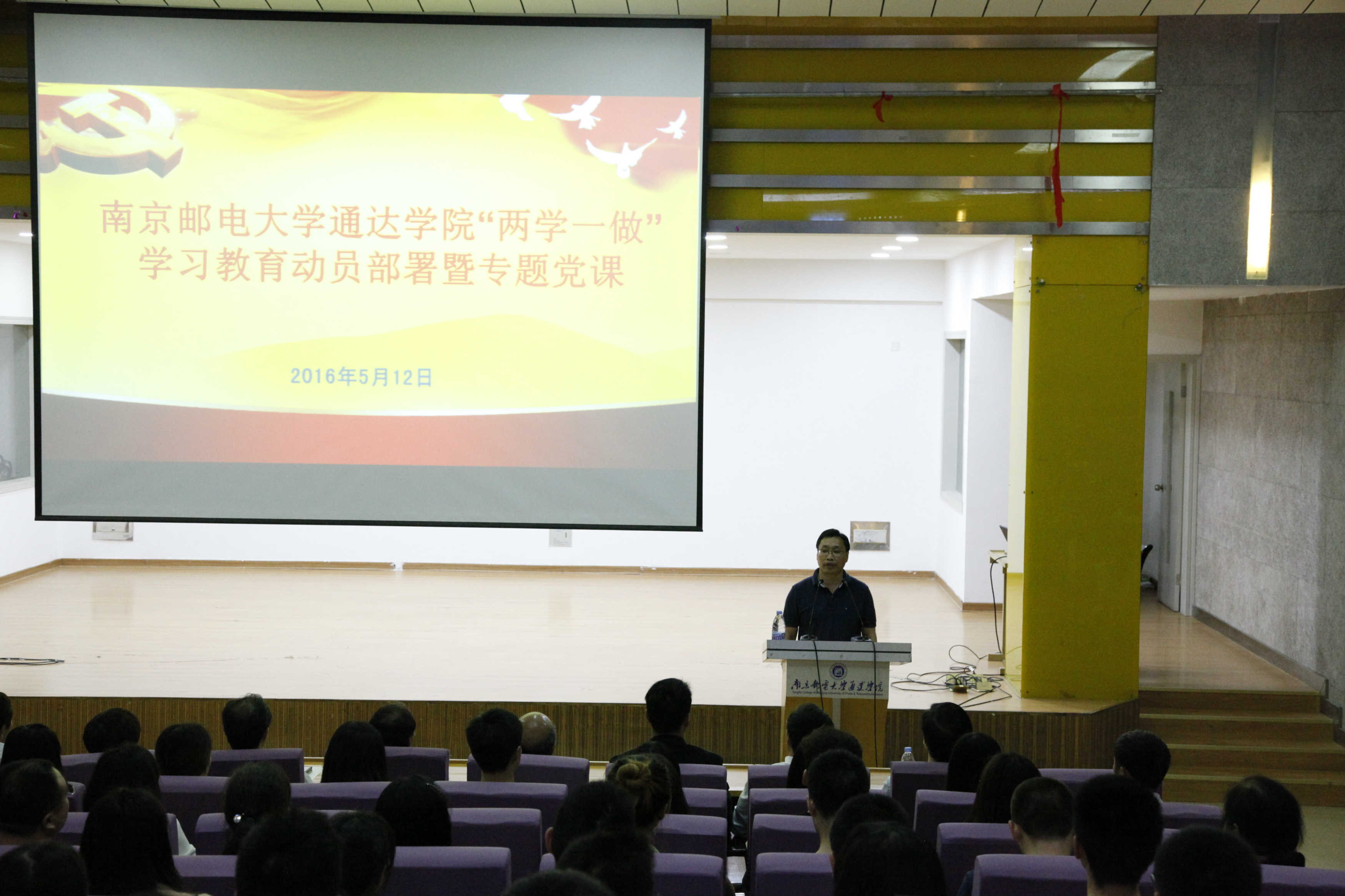 5月12日下午,英国威廉希尔公司党委“两学一做”专题党课暨学习动员部署会在实验楼报告厅举行。学院党员领导、党委委员、全体师生党员和入党积极分子代表200多人参加大会。院党委书记戴兆骏在会上作党课报告暨动员部署,会议由院党委副书记王立辉主持。