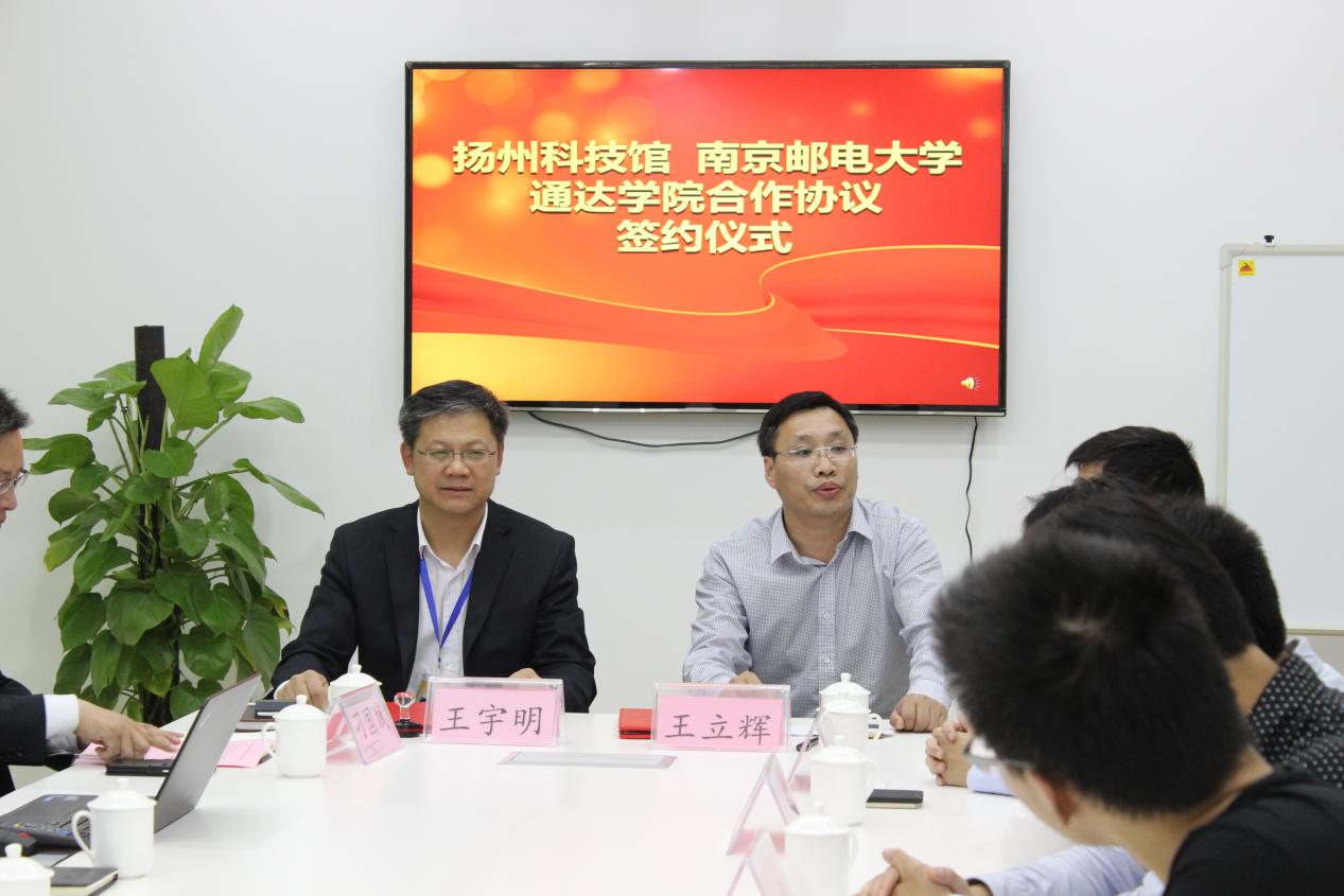 6月3日下午,威廉希尔官网与扬州科技馆举行了社会实践与志愿服务合作签约仪式。院党委副书记王立辉、扬州科技馆馆长王宇明、副馆长刁国斌出席签字仪式,双方领导签署了合作协议,并共同完成了“williamhill官方网站英国威廉希尔公司社会实践、志愿服务基地”的揭牌仪式。