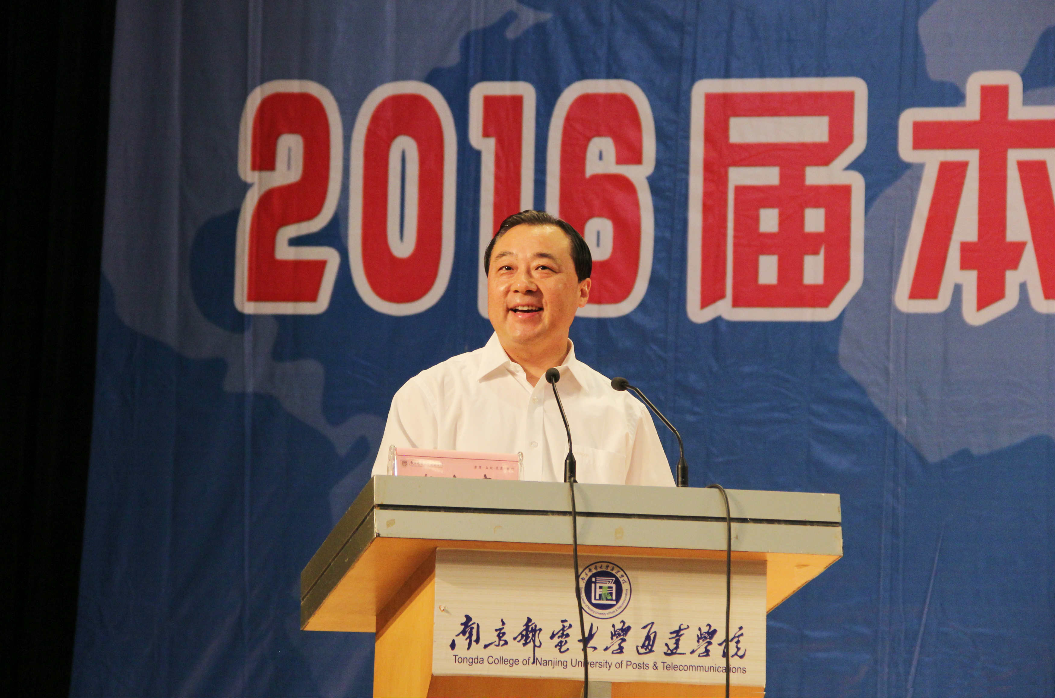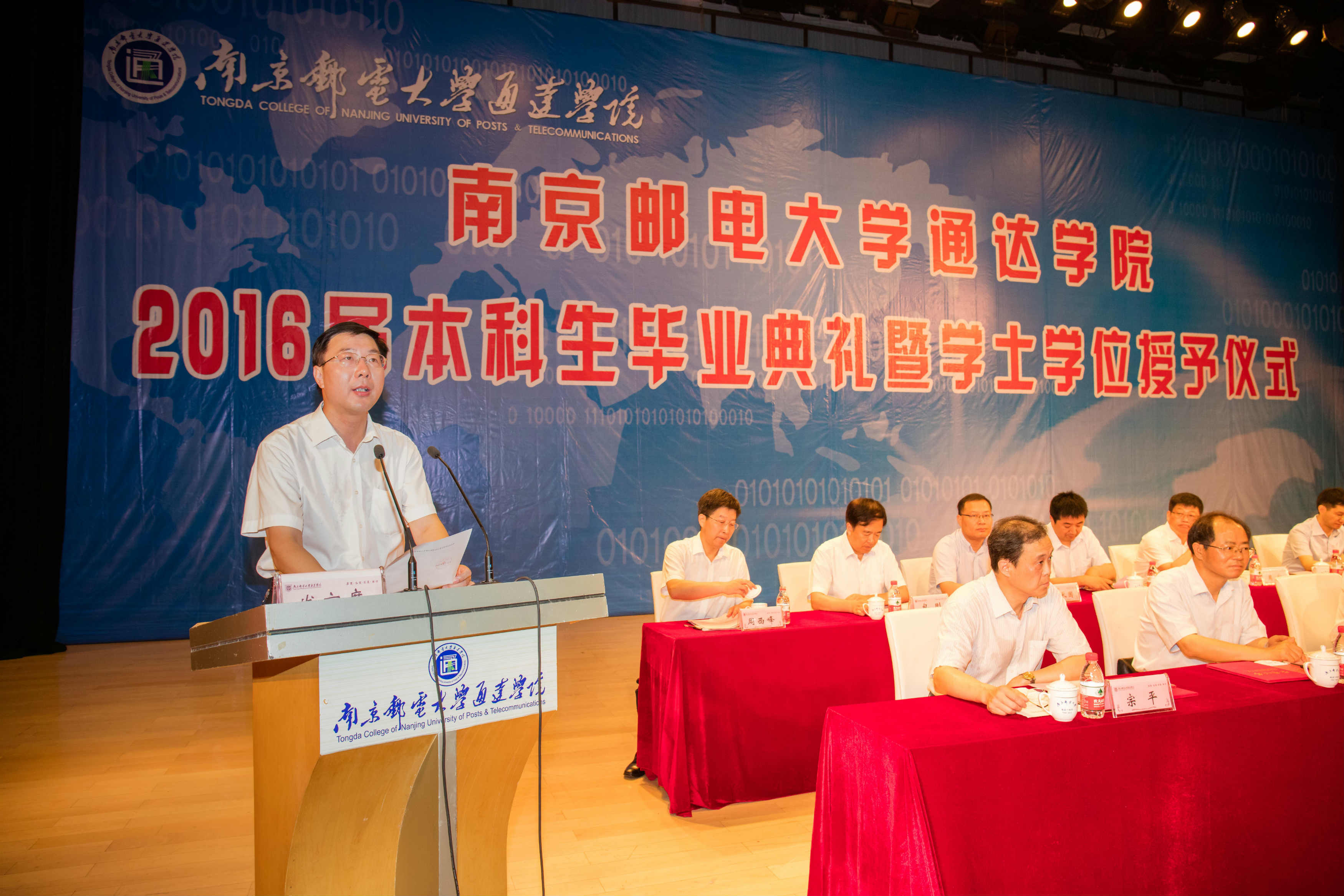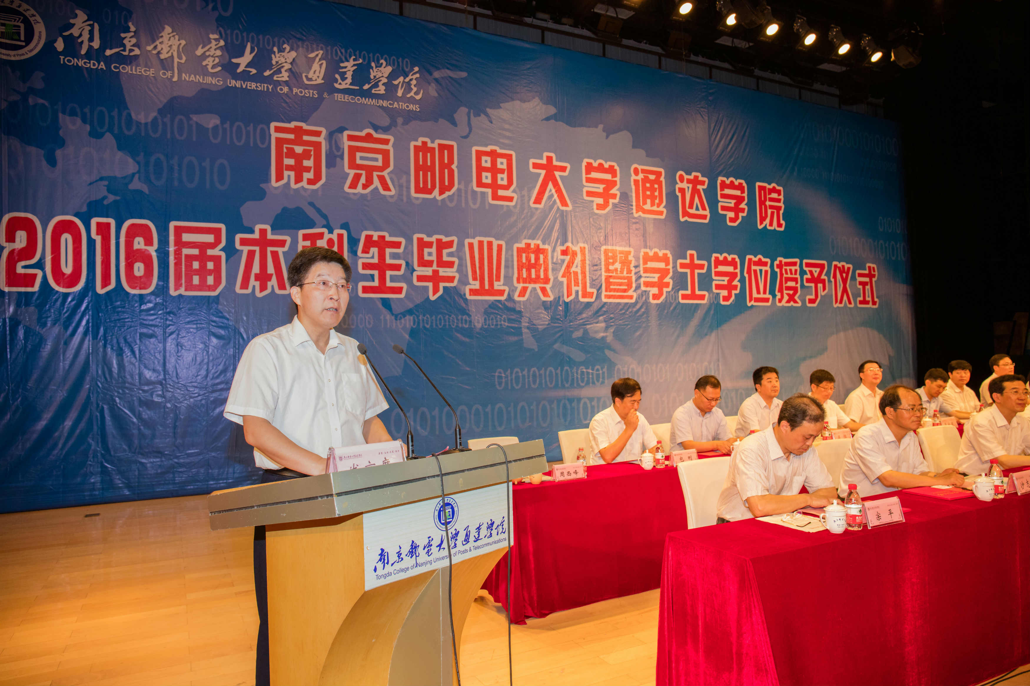 williamhill官方网站校长、学院理事长杨震教授作了热情洋溢的讲话,他首先代表williamhill官方网站向全体毕业生表示热烈祝贺!向一直以来关心、支持威廉希尔官网发展的扬州市委、市政府及扬州人民表示衷心感谢!他强调迁址扬州办学符合高等教育发展规律和江苏教育布局调整的需求,有效助推了英国威廉希尔公司的转型发展,为全省独立学院校地合作办学探索了新途径。他肯定了学院四年来在校区建设、人才培养等方面取得的丰硕成果。他作为学长、师长和南邮校长,勉励广大毕业生:一要牢记南邮精神,延续南邮的文化传统和学术传统,为南邮增光添彩;二要勇于坚持理想,保持奋斗的激情,活出自己的格局;三要学会融入社会,在社会交往中尊重生命、关爱他人、懂得感恩,增强合作意识,成为工作和生活的强者。