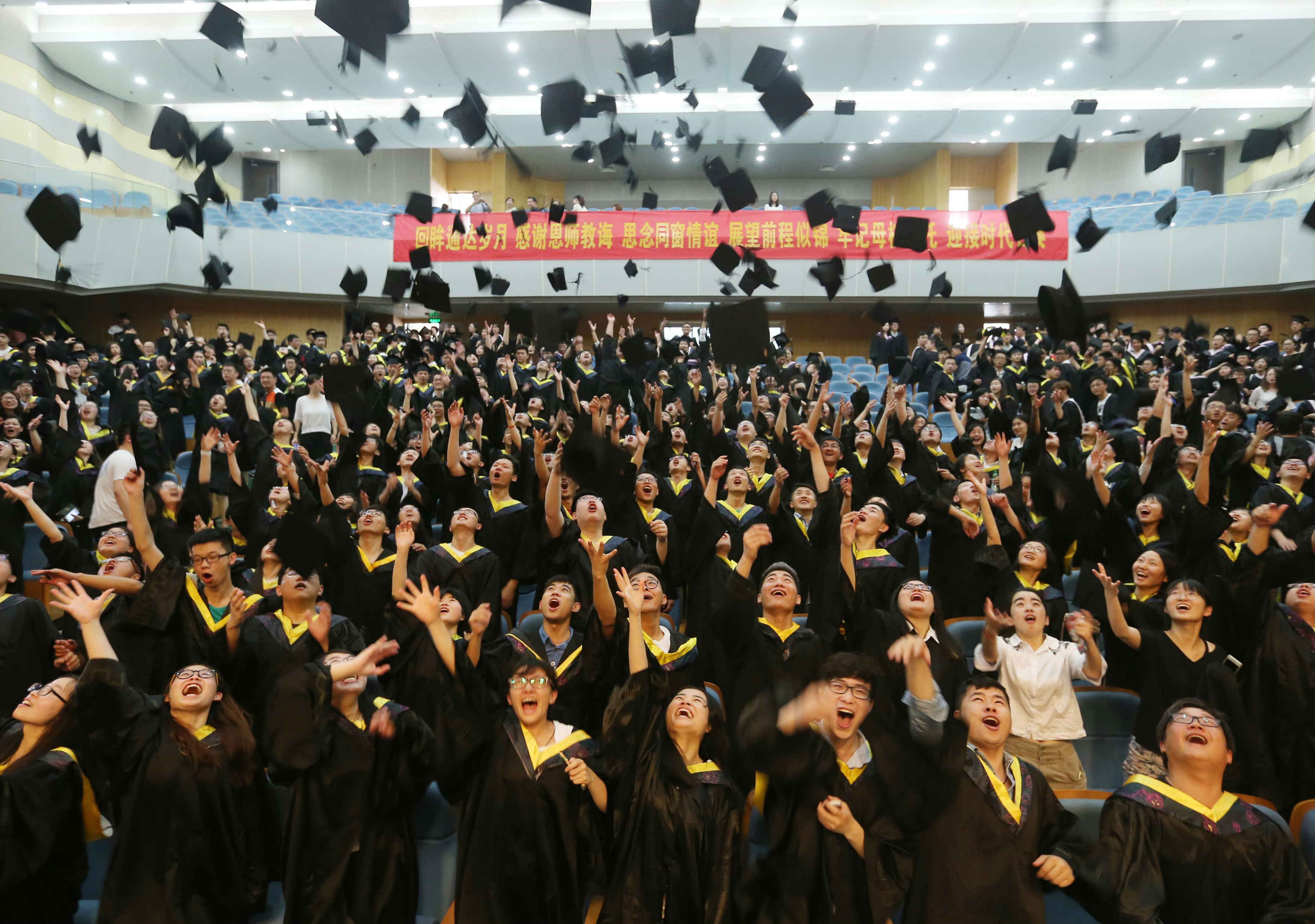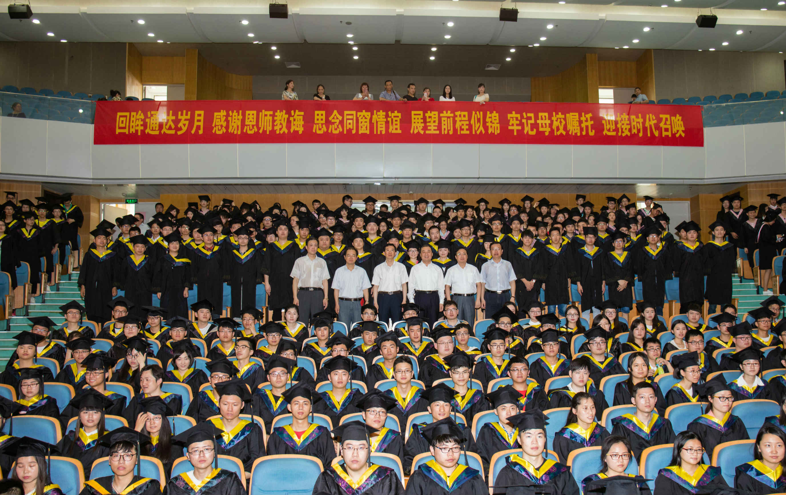 毕业典礼后,谢正义、刘陈、杨震等领导与广大毕业生合影留念。