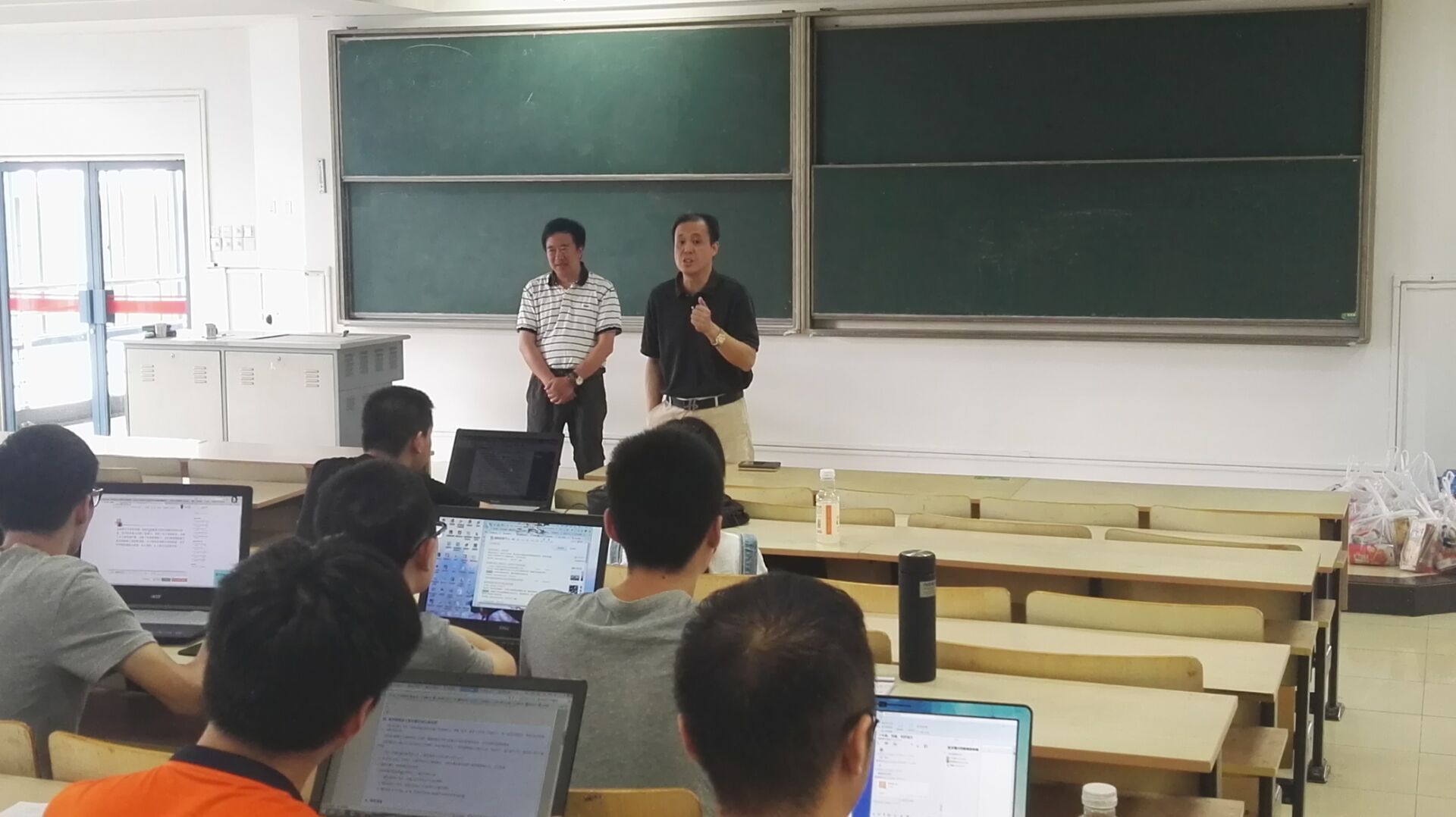 8月23日上午,williamhill官方网站英国威廉希尔公司宗平院长、包刚副院长、基础部张颖主任以及williamhill官方网站理学院李永涛副院长、工程数学教学中心孔告化主任一行冒着高温亲临数学建模培训现场,听取了数学建模带队指导老师范胜雪的培训情况汇报,并慰问了参加培训的指导老师和学生。