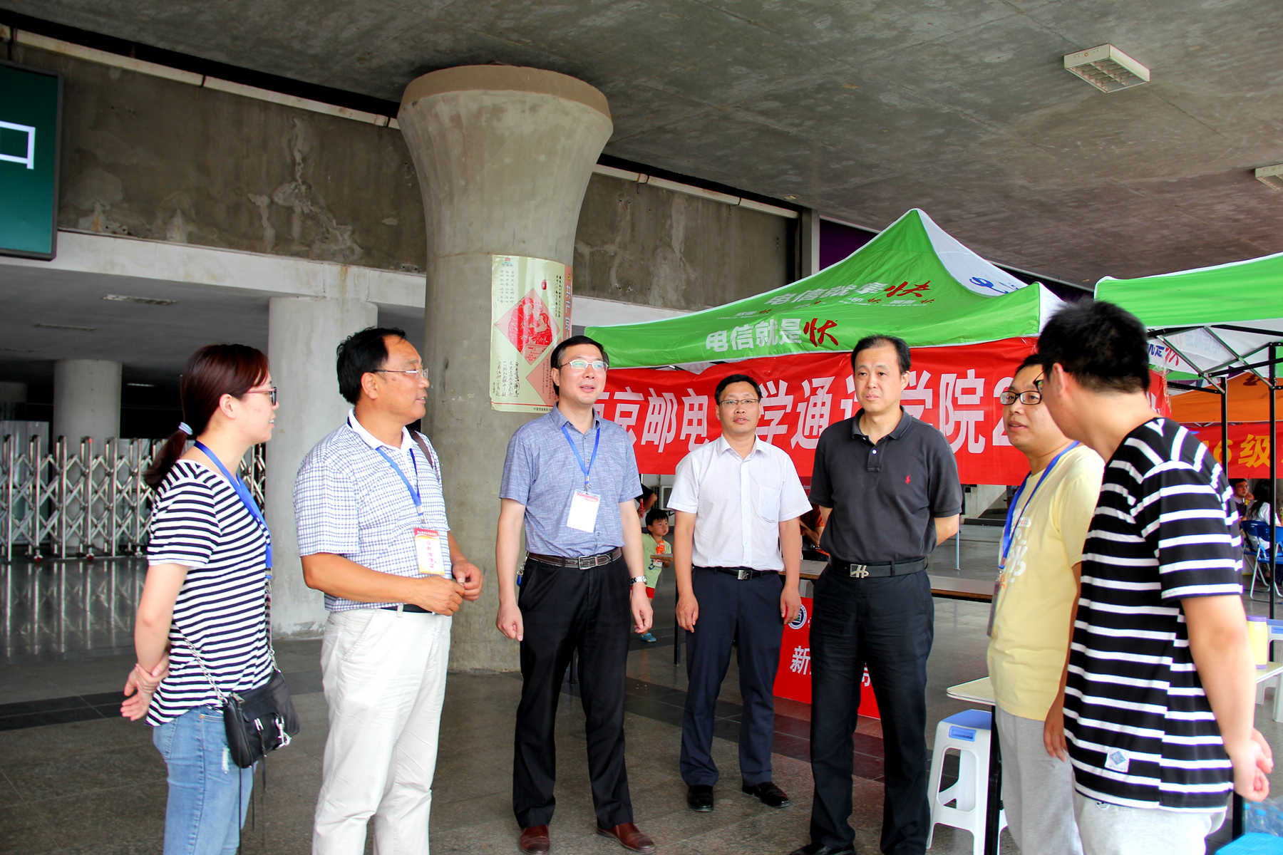 9月3日上午,williamhill官方网站副校长周南平亲临现场,在学院领导的陪同下,走访了报到处、缴费处、停车场、教师公寓、学生宿舍、学生食堂等场所,看望并慰问工作在一线的教职员工、学生志愿者,询问新生报到情况,并与新生及家长亲切交流。