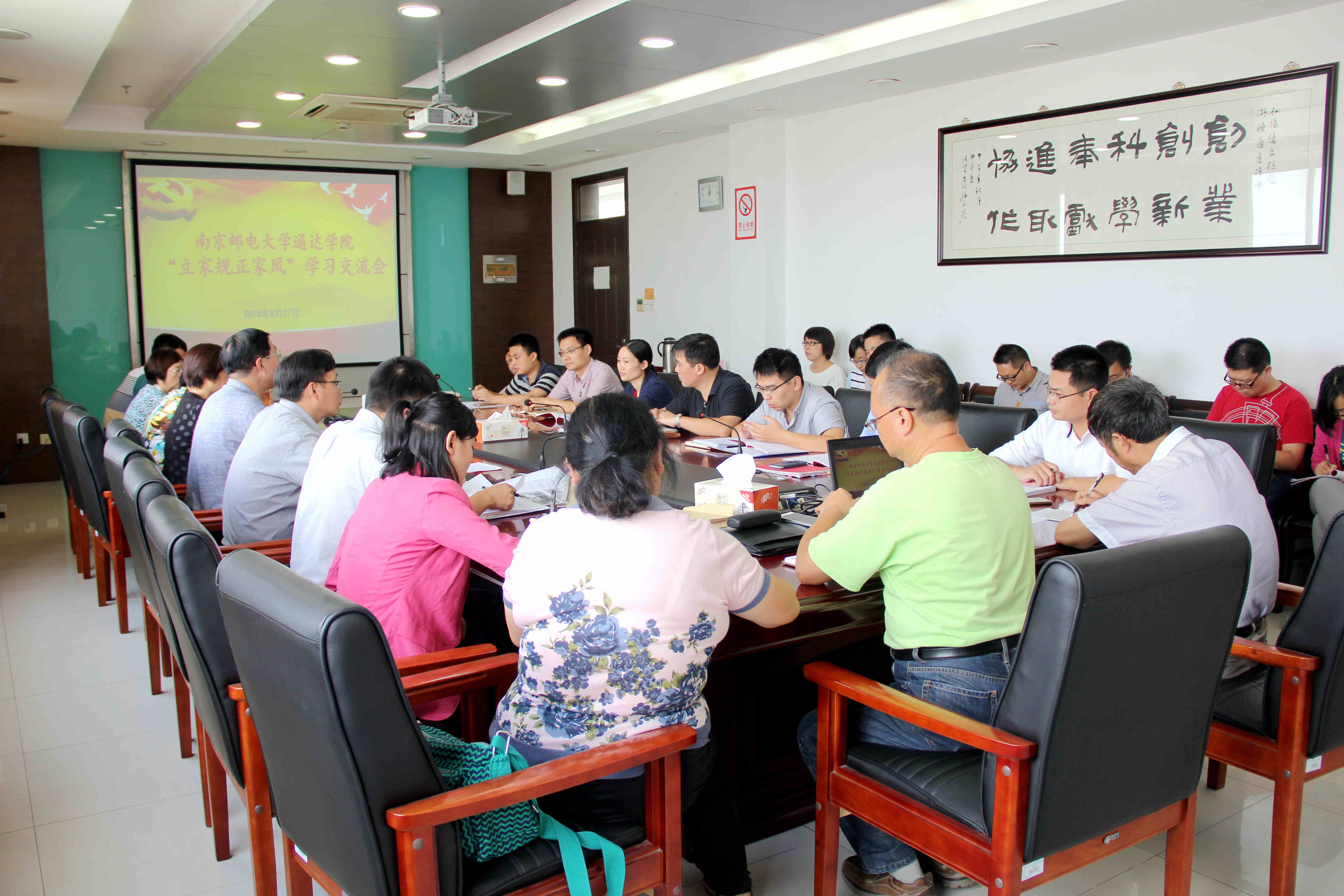会上,首先由党员干部作“立家规正家风”学习体会与个人家规家风交流。院党委委员、教务处长卞文献,院党委副书记王立辉,院党委书记戴兆骏先后发言。他们畅谈了“领导干部立家规,共产党员正家风”专题学习体会及个人的家规家风。接着,后勤管理处党支部书记周玉松介绍了本支部开展的“立家规正家风”主题党日活动,学生工作处党支部书记解厚荣介绍了学工处、机关、招生就业处三党支部联合开展的“追忆革命历史、涵养优良家风、做四讲四有党员”主题党日活动。交流研讨使与会同志深受教益和启发。