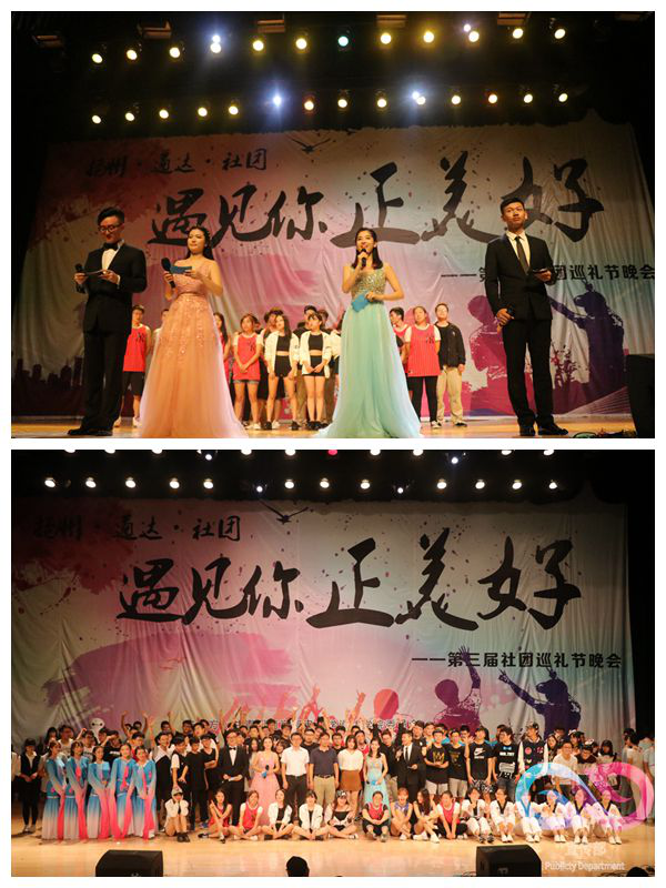 9月26日晚,由院团委主办、学生社团联合会承办的“扬州·通达·社团遇见你正美好”第三届社团巡礼节晚会在威廉希尔官网大学生活动中心举行。党委副书记王立辉、团委书记解厚荣,扬州铭扬培训服务有限公司经理陈慧,中国联通扬州分公司经理王静,以及扬州市各高校社联主席、威廉希尔官网辅导员代表、2016级新生共1200余人观看了此次晚会。