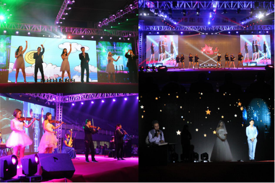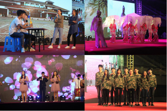 晚会以激昂、成长、倔强三个篇章展开,大艺团同学以一段火辣的热舞开场并瞬间点燃了全场的气氛,晚会正式拉开帷幕。《器乐串烧》中西洋乐与民乐的激情碰撞,《千本樱》里各种器乐的完美融合,都给我们带来了视听上的享受;情景音乐剧《一笑倾城》带我们在音乐中谈了一场“恋爱”;音乐剧《青春且歌且行》和小品《纳新》创意新颖、蕴意深刻;群口相声《炼金术士》展示了演员深厚的表演功力,笑点十足;民族舞《美人吟》柔美似水,展现了浓烈的东方气息;“通达之声”的朗诵《咱们90后》中新奇的表演方式也着实让人眼前一亮;新媒体中心精心制作的迎新、军训等视频记录了16级新生入学后的点点滴滴,更是让人感触颇深。