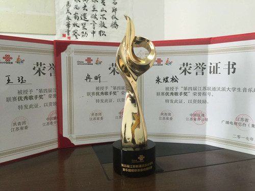 3月18日晚,由共青团江苏省委、中国联通江苏省分公司、江苏省广播电视总台共同举办的“第四届沃派大学生音乐超级联赛总决赛暨颁奖典礼”在南京审计大学举行。威廉希尔官网和南京师范大学、苏州大学、淮阴师范学院、南京铁道职业技术学院同时被授予“最佳组织奖”,王珏、冉昕、朱煜松三名同学获得“优秀歌手奖”荣誉称号。