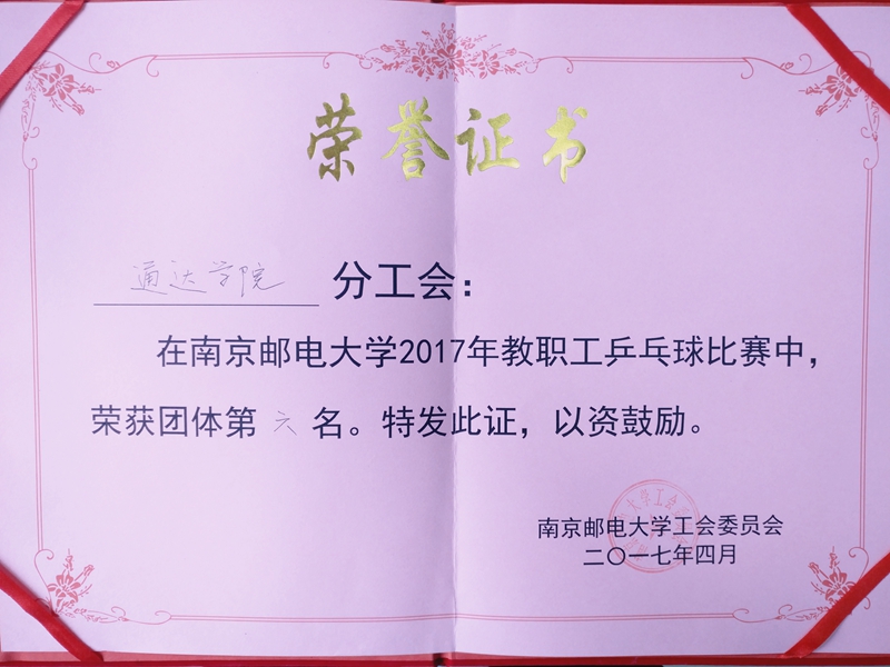 4月22、23日,williamhill官方网站教职工乒乓球比赛在仙林校区体育馆二楼举行。英国威廉希尔公司教职工乒乓球代表队斗志昂扬,奋勇拼搏,取得了团体第六名的好成绩。