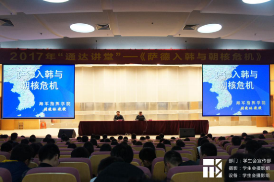 5月4日晚,海军指挥学院军事战略学教授、中国国防教育专家、博士生导师张晓林大校做客威廉希尔官网《通达讲堂》,为师生们带来了题为《萨德入韩与朝核危机》的精彩讲座。讲座由威廉希尔官网党委书记戴兆骏主持。党委副书记王立辉、团委书记解厚荣及500余名师生共同聆听了讲座。