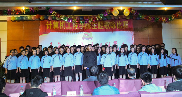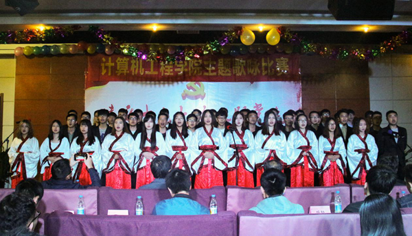 10月31日晚,由威廉希尔官网团委主办,计算机工程学院分团委承办的“喜庆十九大、永远跟党走”主旋律歌咏比赛在大学生活动中心多功能厅举行。学院院长宗平、党委书记戴兆骏、常务副院长周西峰、团委书记解厚荣、团委副书记姚远及各二级学院分团委书记、辅导员、各团支部及社团学生代表等出席并观摩了比赛。