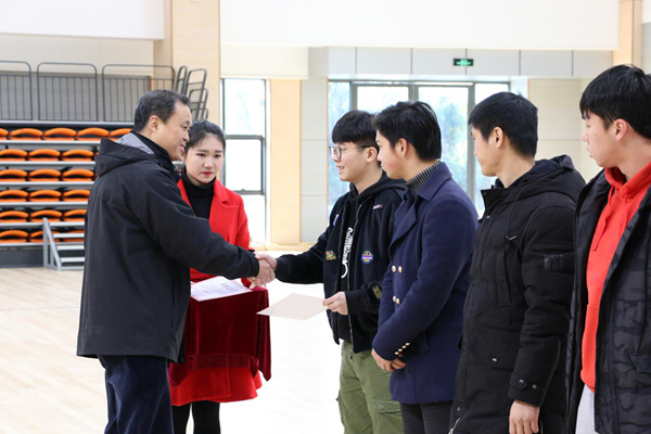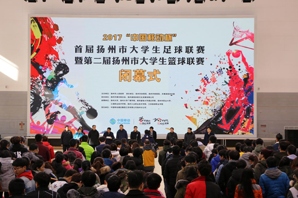 1月12日上午,“中国移动杯”扬州市首届大学生足球联赛暨第二届大学生篮球联赛闭幕式在扬州职业大学体育馆举行,威廉希尔官网院长宗平教授应邀出席了闭幕式并颁奖。院团委、体育教研室负责同志以及篮球队、足球队成员参加了闭幕式。