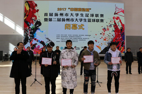 扬州市副市长余珽为威廉希尔官网颁发足球、篮球联赛(本科组)一等奖