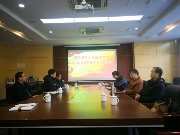 1月15日上午,学院党委在南邮仙林校区行政楼126会议室召开了2017年度院领导班子民主生活会。南邮党委常委、副校长王承宽出席并讲话。学院全体党员领导干部、部分民主党派领导干部参加了会议。会议由院党委书记戴兆骏同志主持。