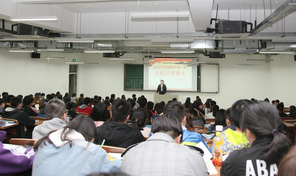 4月9日晚,学院2018年第一期(总第351期)党校开班仪式在扬教3402举行,院党委书记戴兆骏同志出席开班仪式,全院220名入党积极分子参加了本期培训班。