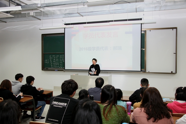 开班仪式由院党委组织员任建蕊老师主持并介绍了培训计划与学习要求。2015级王帅同学、2016级郝瑞同学代表全体培训班学员作了发言。