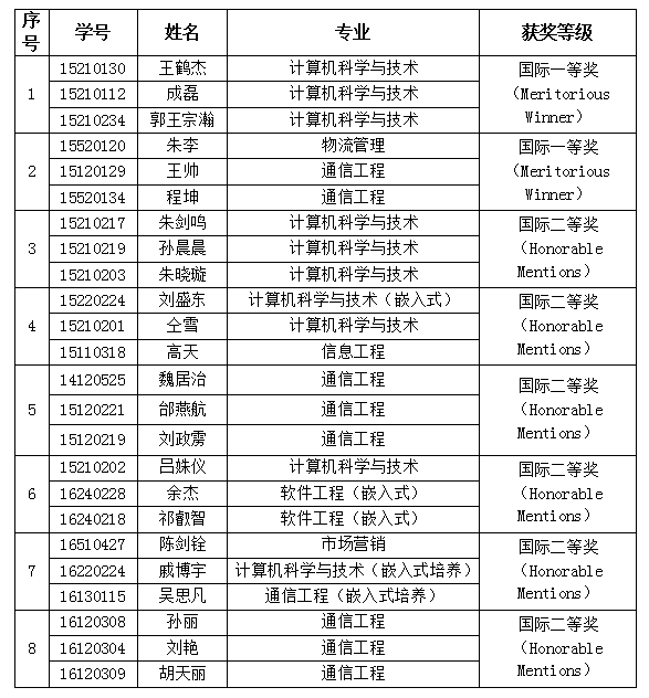 2018年美国大学生数学建模竞赛(MCM/ICM)结果近日揭晓,威廉希尔官网学生荣获一等奖(Meritorious Winners)2项、二等奖(Honorable Mention)6项,再创历史新高。