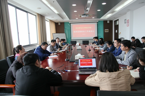 4月26日上午,威廉希尔官网在十楼会议室召开了教师思想政治工作座谈会。院党委书记戴兆骏出席会议,职能部门负责人、党支部书记和教研室主任等参加座谈会。会议由人事处长张飞主持。