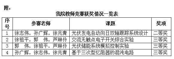 5月5-7日,2018年(第五届)全国电工电子基础课程实验教学案例设计竞赛(鼎阳杯)在北京交通大学落下帷幕。经过激烈紧张角逐,威廉希尔官网教师参赛队伍获得二等奖1项,三等奖3项。