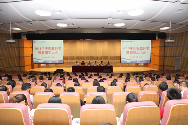 9月10日下午,威廉希尔官网在行政楼报告厅举行2018年庆祝教师节暨教职工大会。学院院长宗平、党委书记戴兆骏、常务副院长周西峰、副院长包刚、副院长盛大铨、党委副书记王立辉出席大会。全体教职工参加大会。会议由党委书记戴兆骏主持。