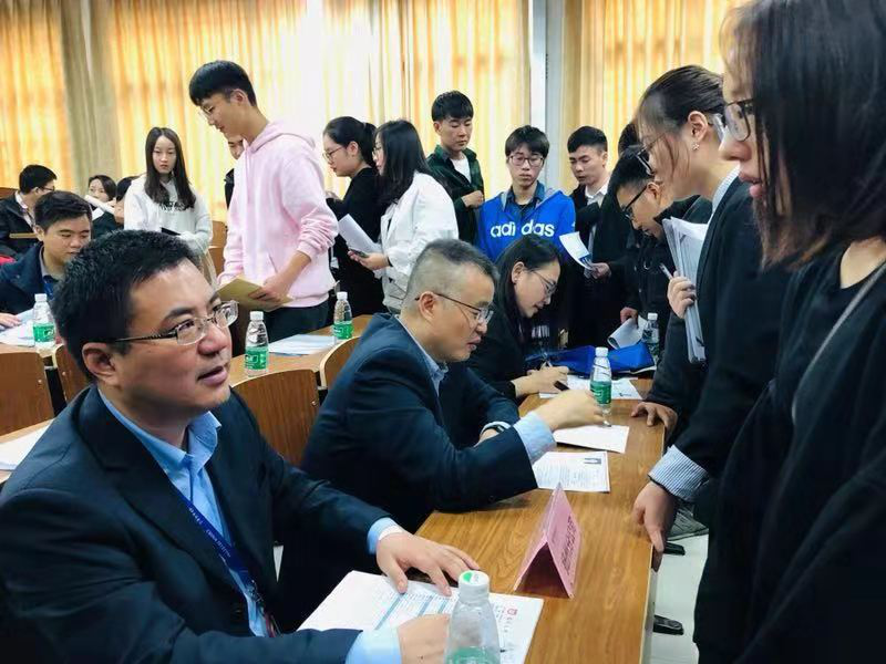 宣讲会后,各地市电信公司代表分别与学生展开了面试和交流。
