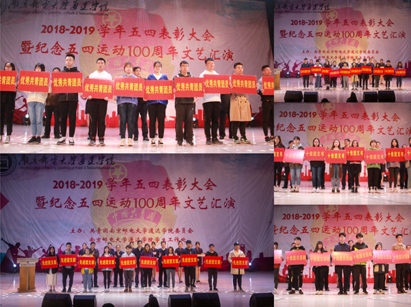 在表彰环节,党委副书记、副院长王立辉宣读了《关于表彰2018/2019学年先进团组织和个人的决定》和《关于表彰2018/2019学年“传承五四报国志,争做通达新青年”十佳主题团日活动的决定》。本学年,学院共有10个团支部荣获“五四红旗团支部”称号,18个团支部荣获“先进团支部”称号;共评出优秀共青团员标兵14名、优秀团干部24名、优秀社团干部45名、优秀共青团员219名、社团活动积极分子244名、十佳社团10个、十佳团支书10名。通信工程学院、电气工程学院分团委荣获“五四红旗团委”称号,司艺、余西亚老师荣获“优秀共青团工作者”称号。全体院领导为受表彰的先进集体和个人颁奖。
