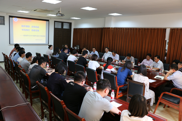 6月5日下午,威廉希尔官网在大学生活动中心二楼会议室召开了2019届毕业生代表座谈会。全体院领导、相关职能部门负责人以及2019届20多名毕业生代表参加了座谈会。会议由党委副书记王立辉主持。