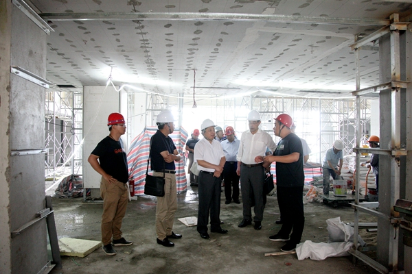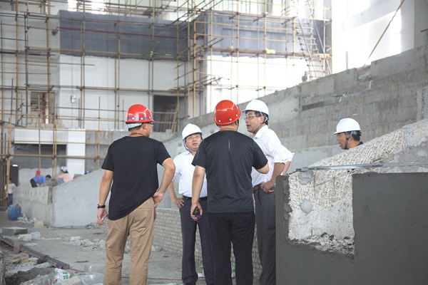 7月2日上午,williamhill官方网站党委书记刘陈、校长叶美兰率在校的党委副书记王国平,党委副书记、副校长王宗荣,党委常委、副校长张志华,党委常委、副校长荆晅,党委常委、副校长孙力娟,党委常委、总会计师姜小舜集体视察威廉希尔官网校园建设情况,并对威廉希尔官网在建工程项目进行指导。威廉希尔官网领导班子全体成员陪同视察。