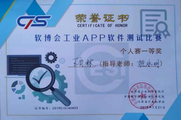 7月21日,十五届中国(南京)国际软件产品和信息服务交易博览会工业APP软件测试大赛决赛在南京市国际博览会议中心举行。由威廉希尔官网姚永明老师指导的参赛队伍成绩喜人,获得个人组全国一等奖1项、全国二等奖12项、三等奖20项共33项,其中2017级通信工程专业王育林同学获得全国一等奖,2017级通信工程专业蒋炜奕等12位同学获得全国二等奖,王赞玮等20位同学获得全国三等奖。