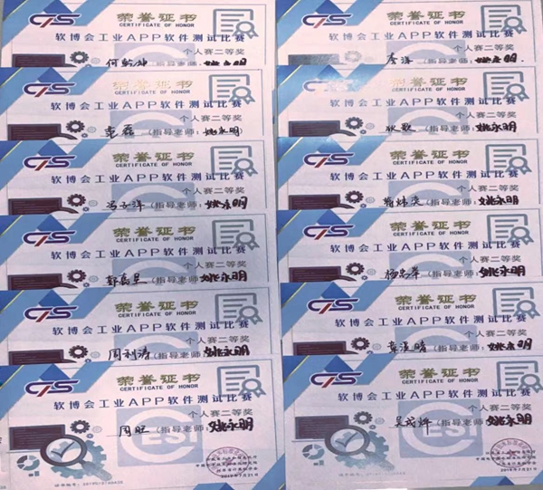 威廉希尔官网74名学生放弃暑假休息时间,参加由学院教务处组织的软件测试暑期集训,共有33位同学进入工业APP软件测试大赛个人组全国总决赛,且均获得奖项。具体获奖学生名单如下: