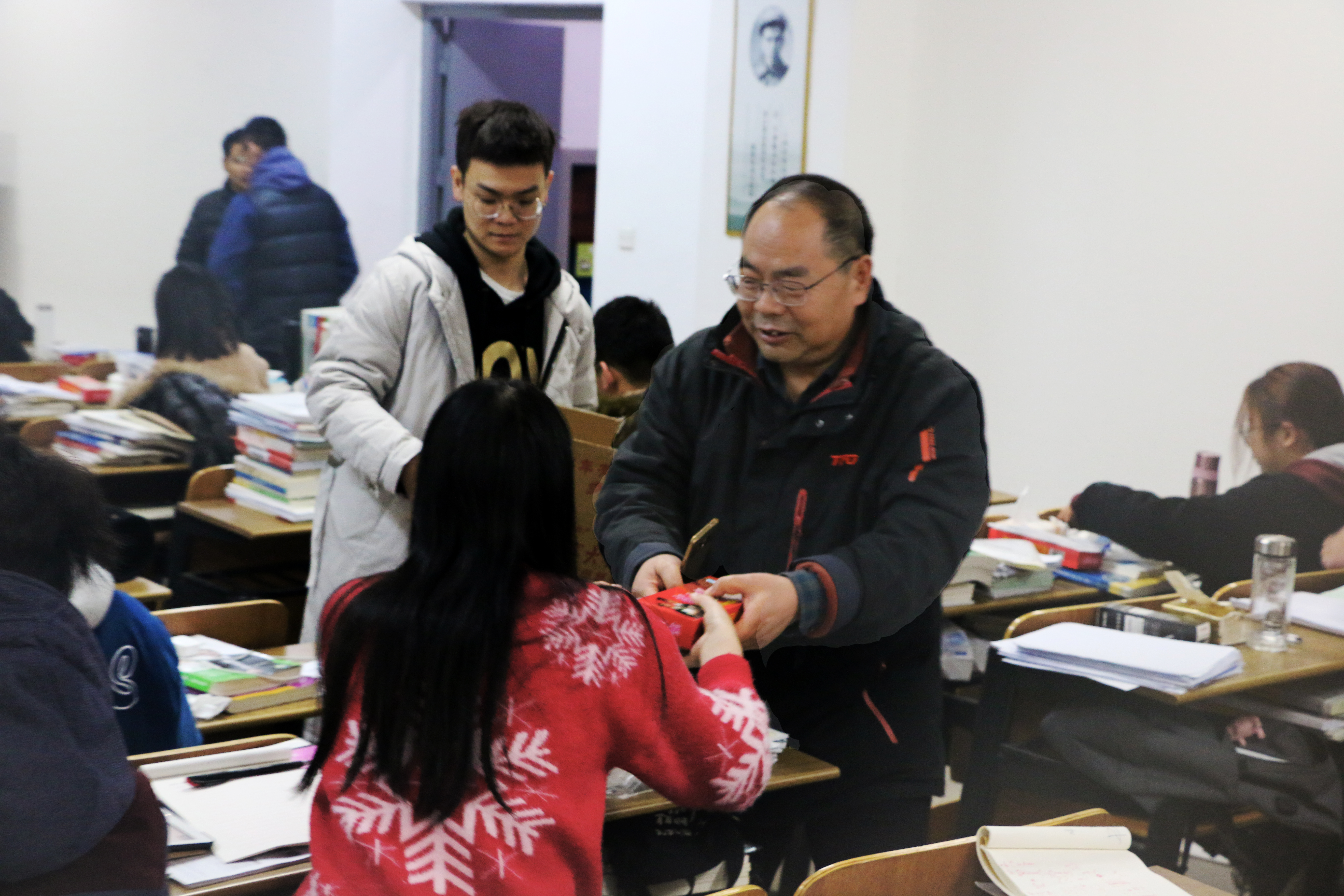 为鼓励考研学子坚守初心和梦想,以最佳状态备战考研,威廉希尔官网为2016级考研学子精心准备了“考研福袋”,于12月17日在考研教室进行了考研冲刺慰问。院长王承宽、党委书记汪业周、党委副书记兼副院长王楷为即将迈向考场的考研学子送上温暖与祝福。