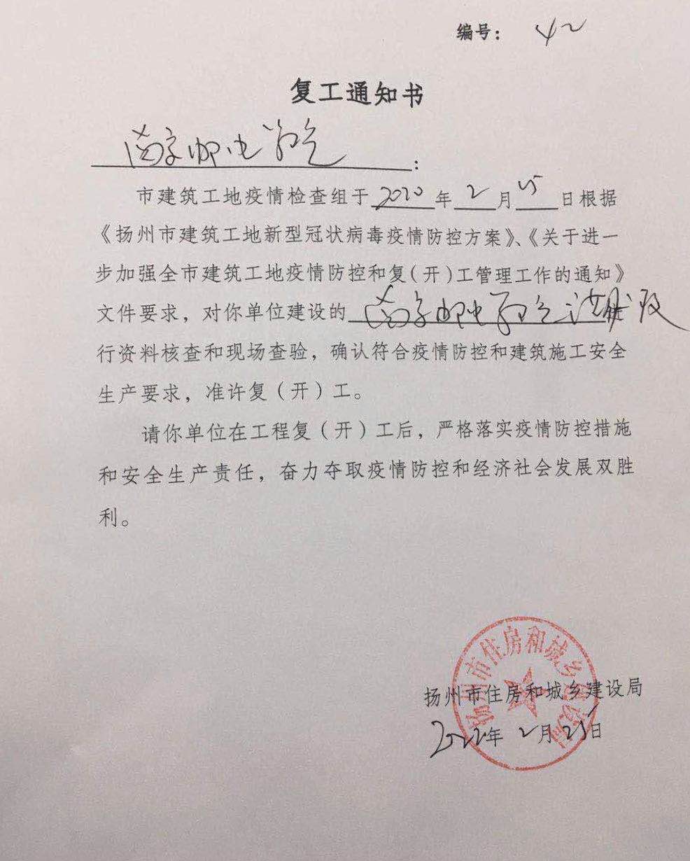 经过联合检查,南邮英国威廉希尔公司二期工程二标段通过资料核查和现场查验,确认符合疫情防控和建筑安全生产要求,准许复工。