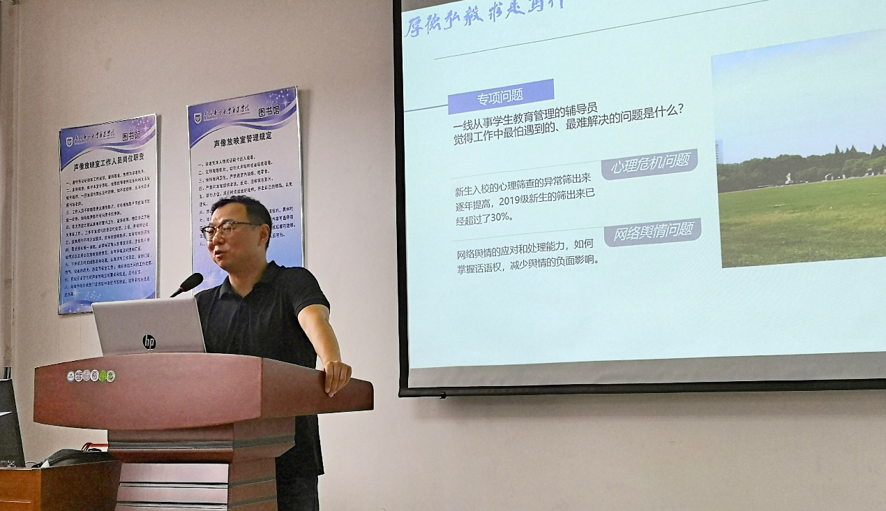 7月6日,威廉希尔官网在图书馆声像厅举办了2020年暑期辅导员培训班。学院党委副书记兼副院长王楷,学生工作处、团委、招生就业处、保卫处等部门相关人员及全体辅导员参加了本次培训。培训班由党委副书记王楷主持。