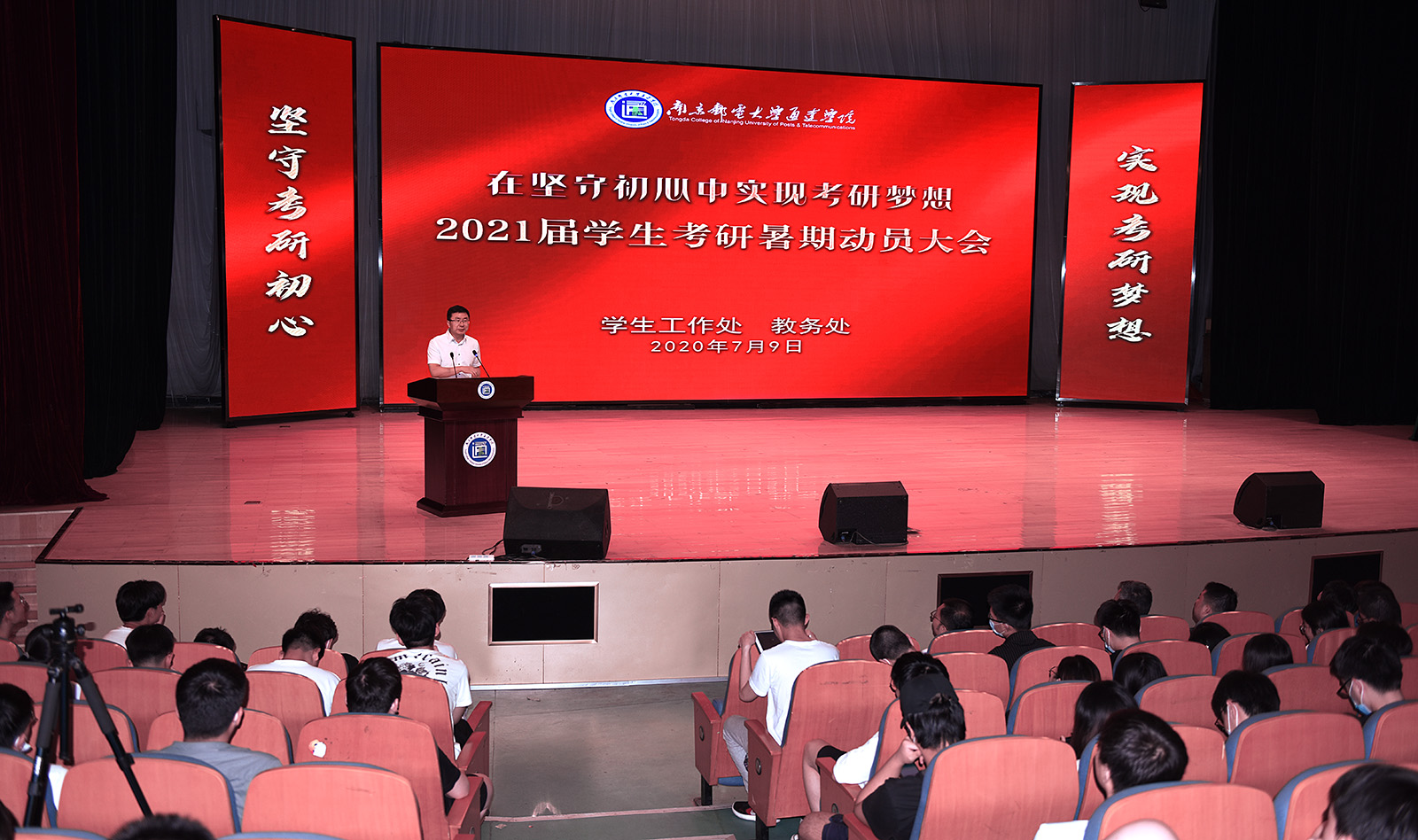 7月9日下午,威廉希尔官网2021届学生考研暑期动员大会在大学生活动中心礼堂举行。常务副院长赵洪牛,副院长刘允,副书记兼副院长王楷,教务处、学工处负责人,2017级全体辅导员及近800名2017级考研学生参加了本次动员大会。大会由学生工作处副处长解厚荣主持。