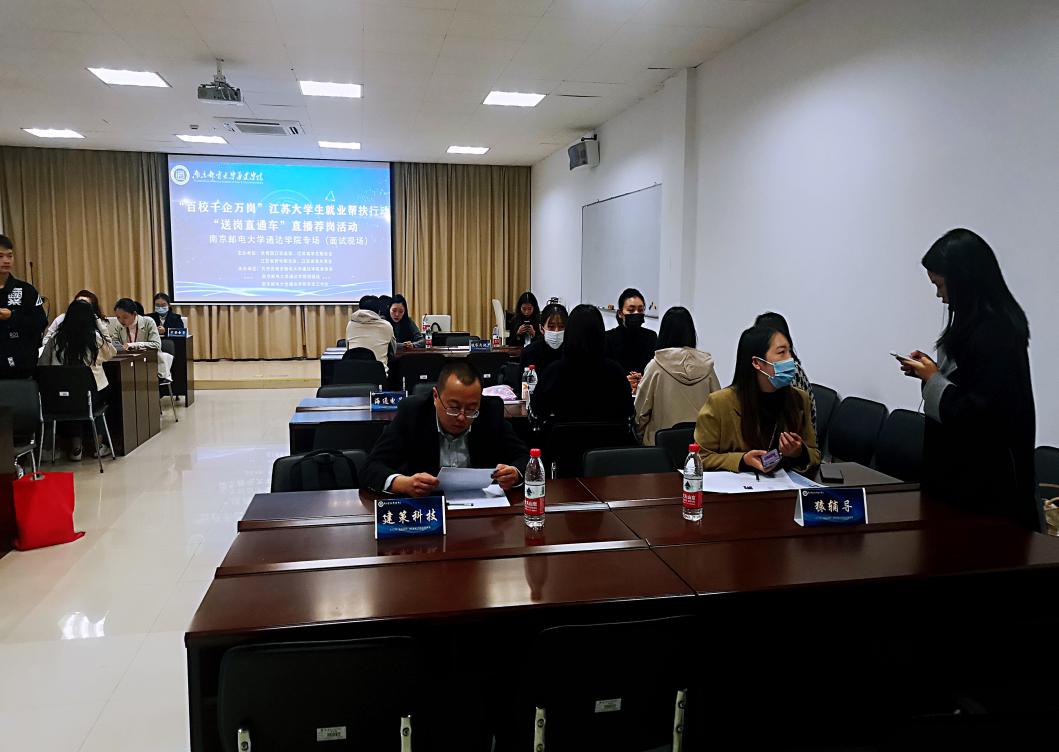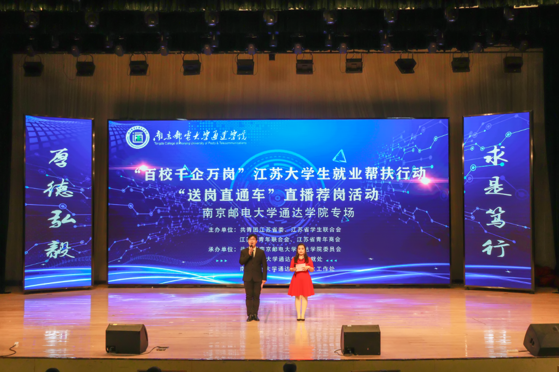 11月13日,由共青团江苏省委、江苏省学生联合会、江苏省青年联合会、江苏省青年商会主办,威廉希尔官网团委、招生就业处、学生工作处承办的“百校千企万岗”江苏大学生就业帮扶行动“送岗直通车”直播荐岗活动在威廉希尔官网大学生活动中心举行。威廉希尔官网常务副院长赵洪牛、相关部门负责人出席了本次活动。本次活动采用线上直播和线下宣讲相结合的形式,吸引了威廉希尔官网600余名毕业生参与了线下宣讲,上千人观看了云端直播。