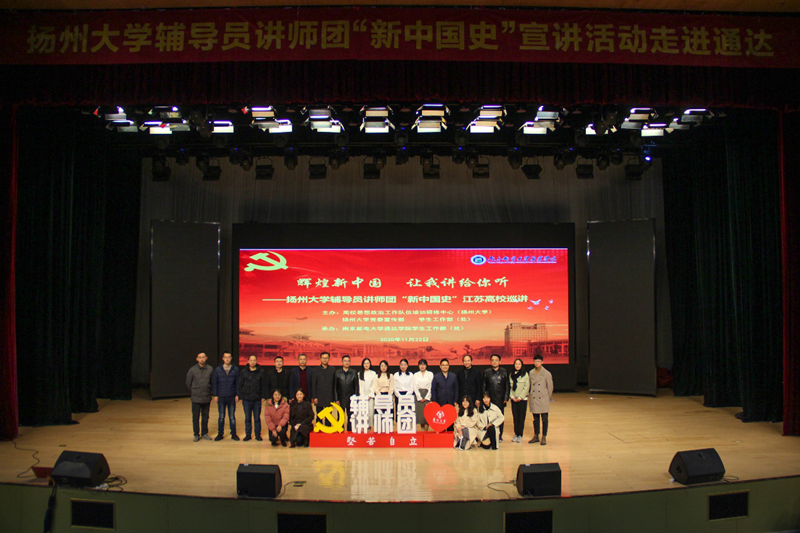 11月23日晚,威廉希尔官网特邀扬州大学辅导员讲师团在大学生活动中心礼堂组织开展了“新中国史”的宣讲活动。扬州大学党群党总支书记、党委学生工作部(处)副部(处)长、辅导员讲师团团长居学明,党委宣传部副部长吴锡平,物理科学与技术学院党委副书记、辅导员讲师团副团长高红明应邀参加了本次宣讲活动。威廉希尔官网党委副书记兼副院长王楷,学生工作处处长李印、副处长解厚荣、2020级全体辅导员以及近1200名2020级学生参加了此次活动。本次活动由2020级辅导员唐玉杰主持。