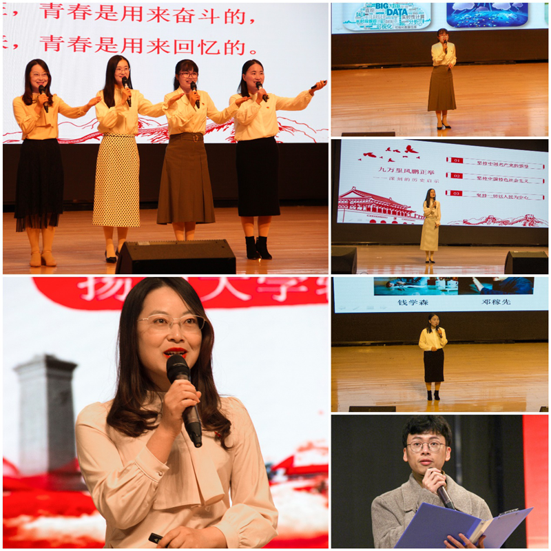 此次“新中国史”宣讲活动旨在引导广大青年学生进一步了解新中国的光辉历程和伟大成就,进一步坚定“四个自信”。宣讲分为四个部分,分别由扬州大学机械工程学院团委书记、新中国史宣讲团团长徐香翠,扬州大学环境科学与工程学院团委副书记、新中国史宣讲团副团长陈燕,扬州大学商学院团委副书记、新中国史宣讲团成员孔瑾,扬州大学生物科学与技术学院辅导员、新中国史宣讲团成员郭蕾四位老师担任主讲。