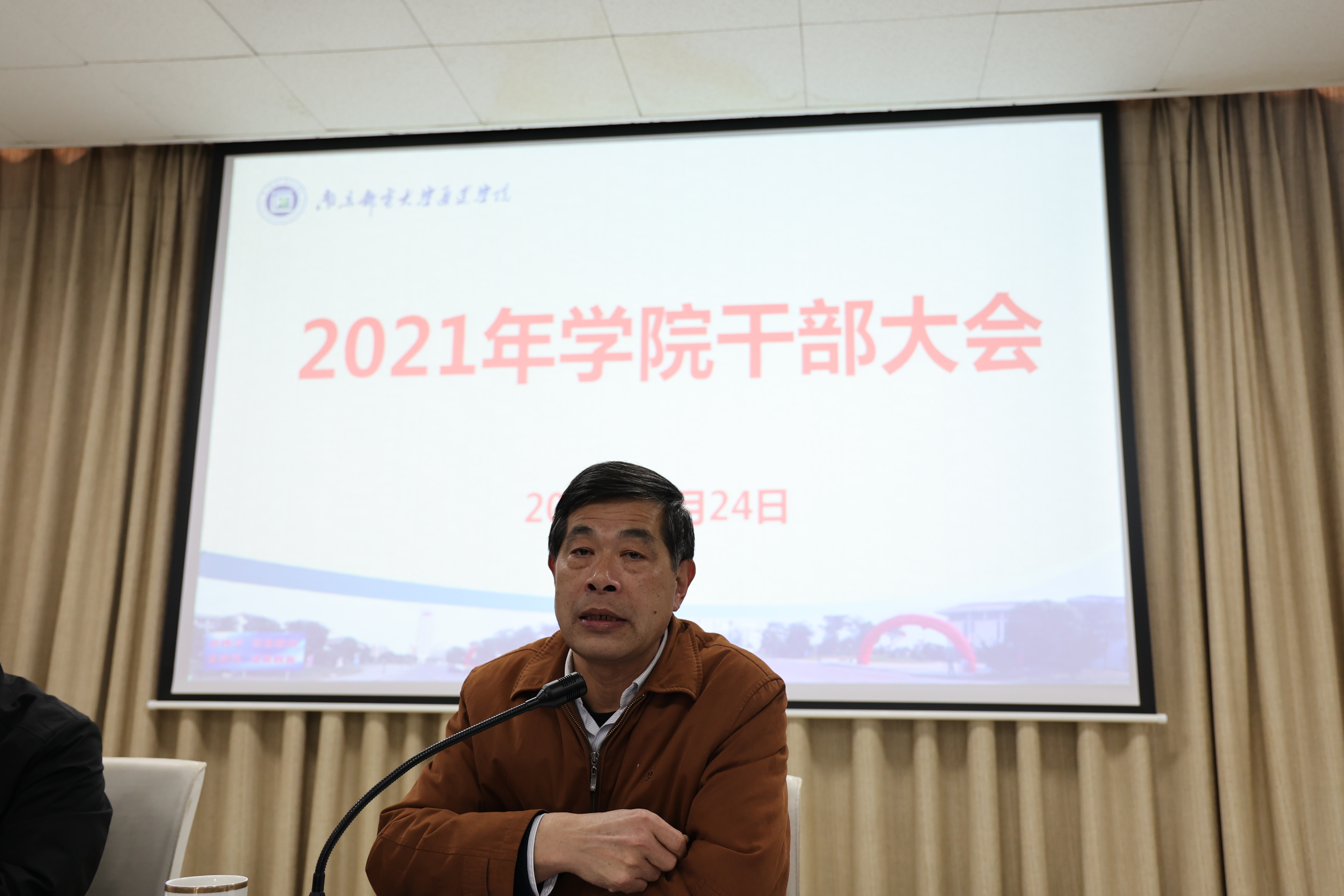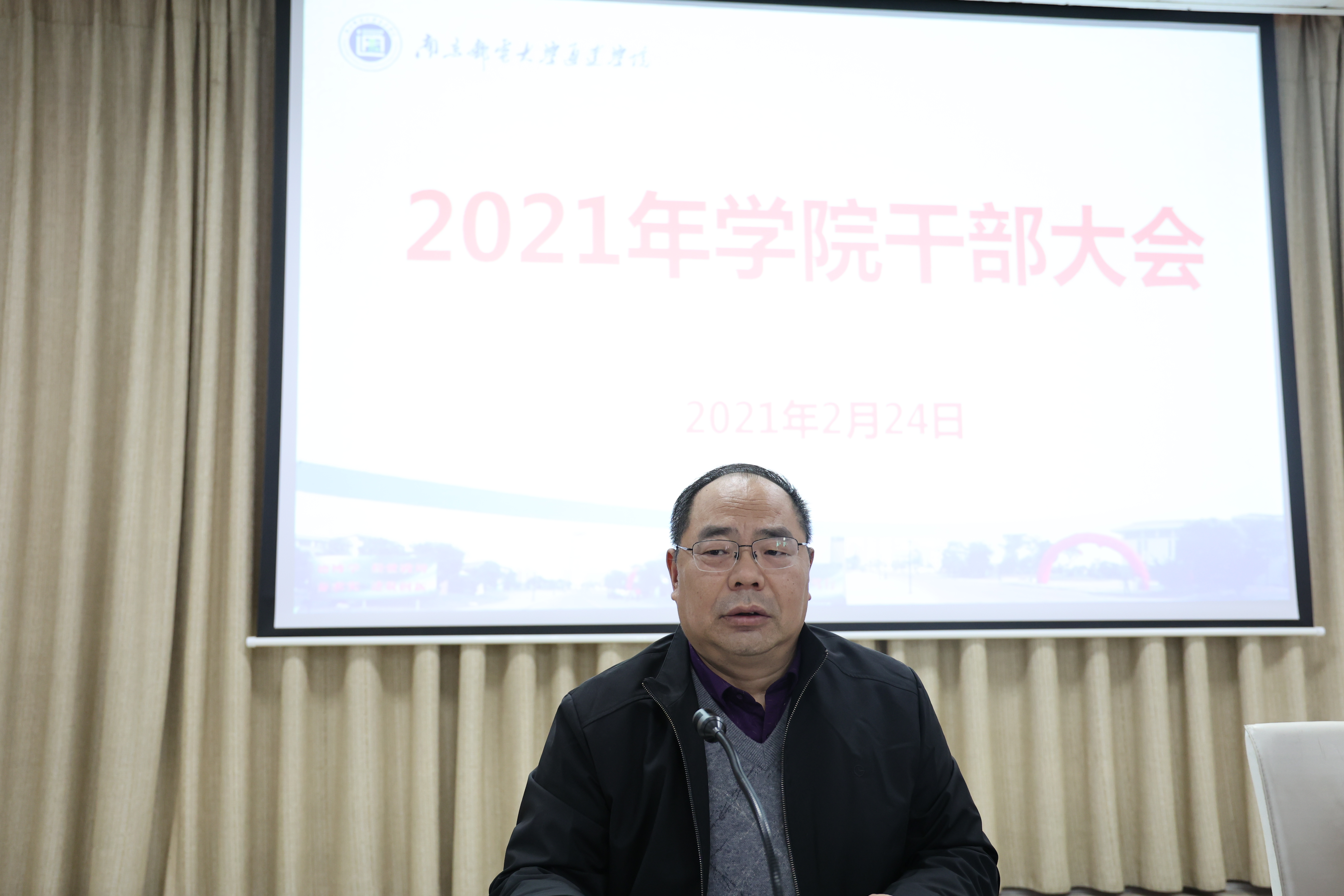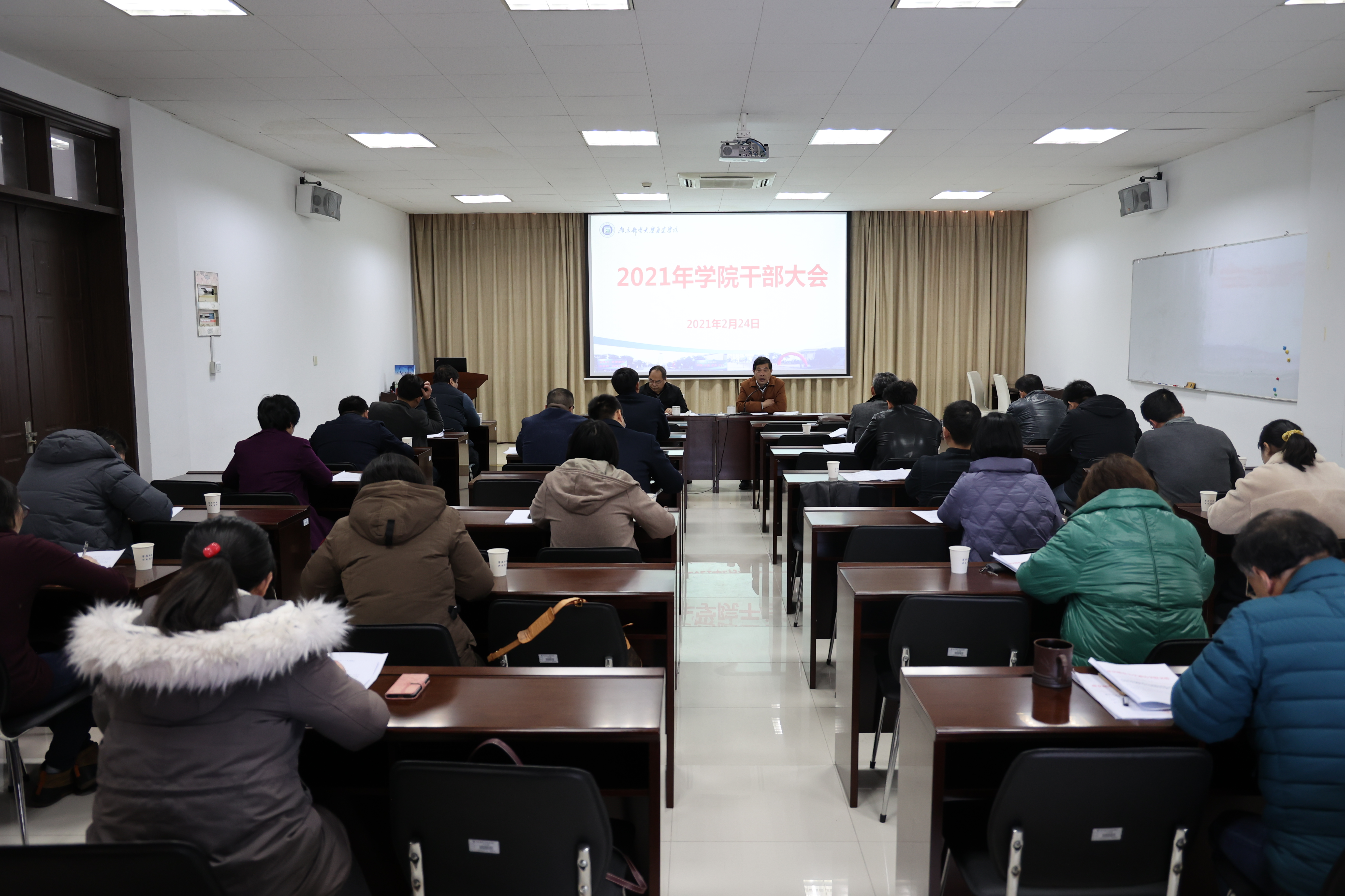 2月24日下午,学院在大学生活动中心一楼会议室召开2021年干部大会。全体院领导、中层干部及部分教研室主任参加了会议。会议由院党委书记汪业周主持。