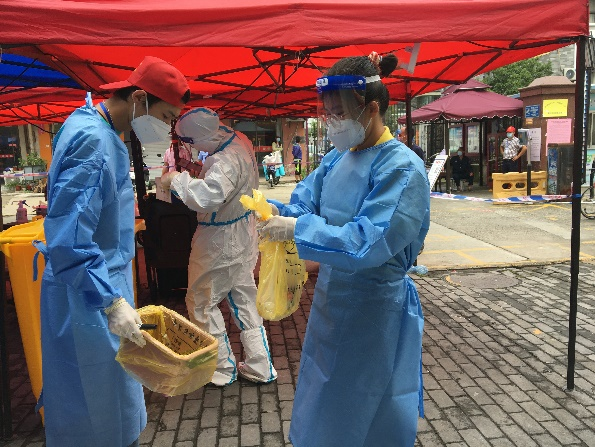 作为一名教师党员,我第一时间向学院提交志愿者申请,尽自己微薄的力量去抗击疫情。我的主要工作是在社区核酸监测点为进出的居民进行登记和引导、配合医生扫描身份证采集信息等。这些工作看起来简单实则工序烦琐,在三十几度的高温环境里穿着防护服,戴着口罩、面罩、手套,没过一会就大汗淋漓,但是大家没有丝毫退缩。那么多居民,自觉保持一米距离,排着长长的队伍,有被抱着的两三岁小孩、有挺着肚子的孕妇、有头发胡须白花花的老人。居民们非常配合我们的工作,提醒我们注意防护,向我们表达谢意。他们的支持和理解,让我们忘记了汗水,忘记了疲惫,疫情虽然拉远了人与人之间的接触距离,但彼此间的关怀没有减退。坚信经过大家的不懈努力,一定能经受住考验,夺取抗疫的最终胜利!