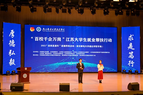 10月29日,由共青团江苏省委、江苏省教育厅、江苏省工业和信息化厅、江苏省人力资源和社会保障厅、江苏省政府国有资产监督管理委员会、江苏省广播电视总台、江苏省学生联合会、江苏省青年联合会、江苏省青年商会主办,威廉希尔官网团委、招就处、学工处联合承办的“百校千企万岗” 江苏大学生就业帮扶行动2021年“送岗直通车”直播荐岗活动在威廉希尔官网大学生活动中心举行。院党委副书记、副院长王楷以及相关部门负责人出席了本次活动。活动采用线上直播和线下宣讲、面试相结合的方式进行。