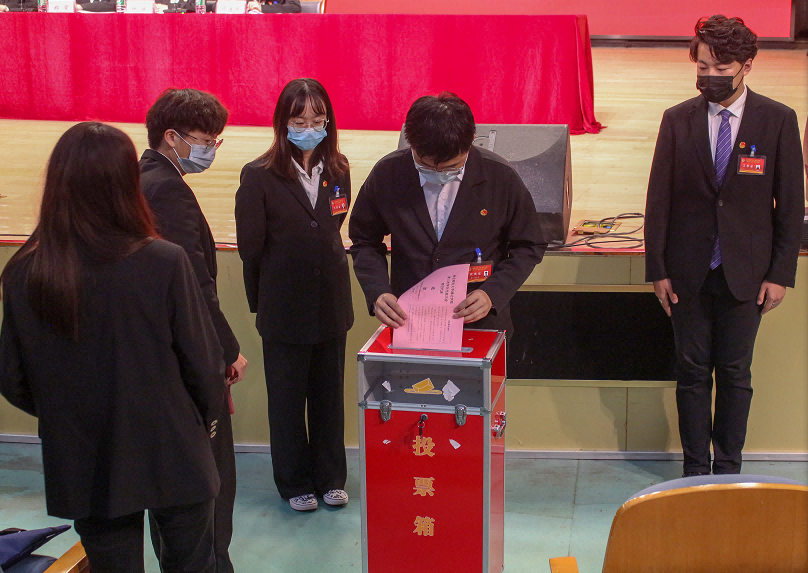 闭幕式上党委学生工作部部长解厚荣对当选同学表示祝贺并作了讲话。大会在青春洋溢、团结民主的氛围中落下帷幕。