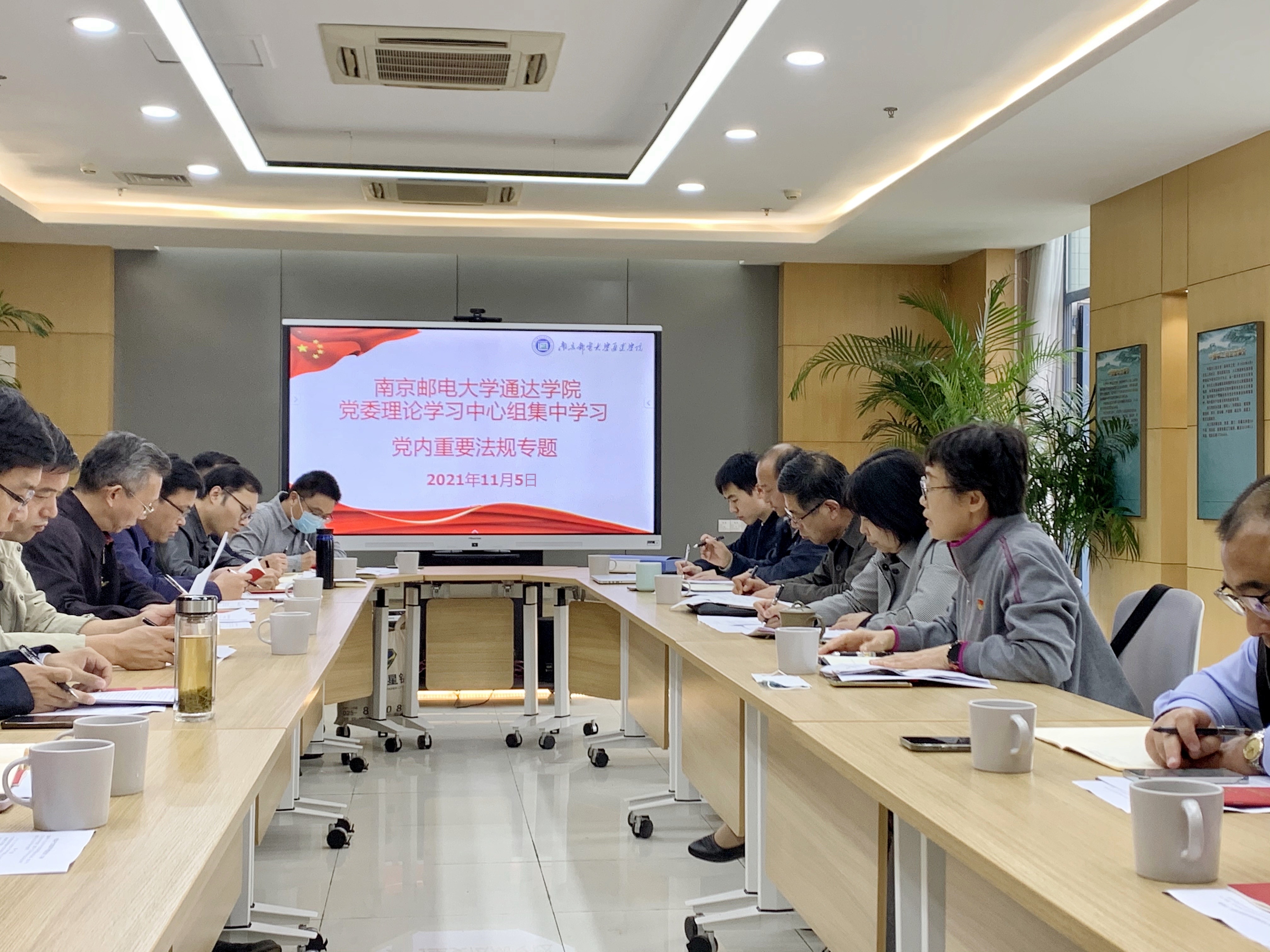11月5日下午,学院党委理论学习中心组在南邮仙林校区行政楼425室,开展了党内重要法规专题学习交流。校党委常委、副校长、第七巡学旁听组组长孙力娟,以及成员校党委统战部常务副部长胡玉东、组织部翟越凡到会督查指导。会议由学院党委书记朱清主持。