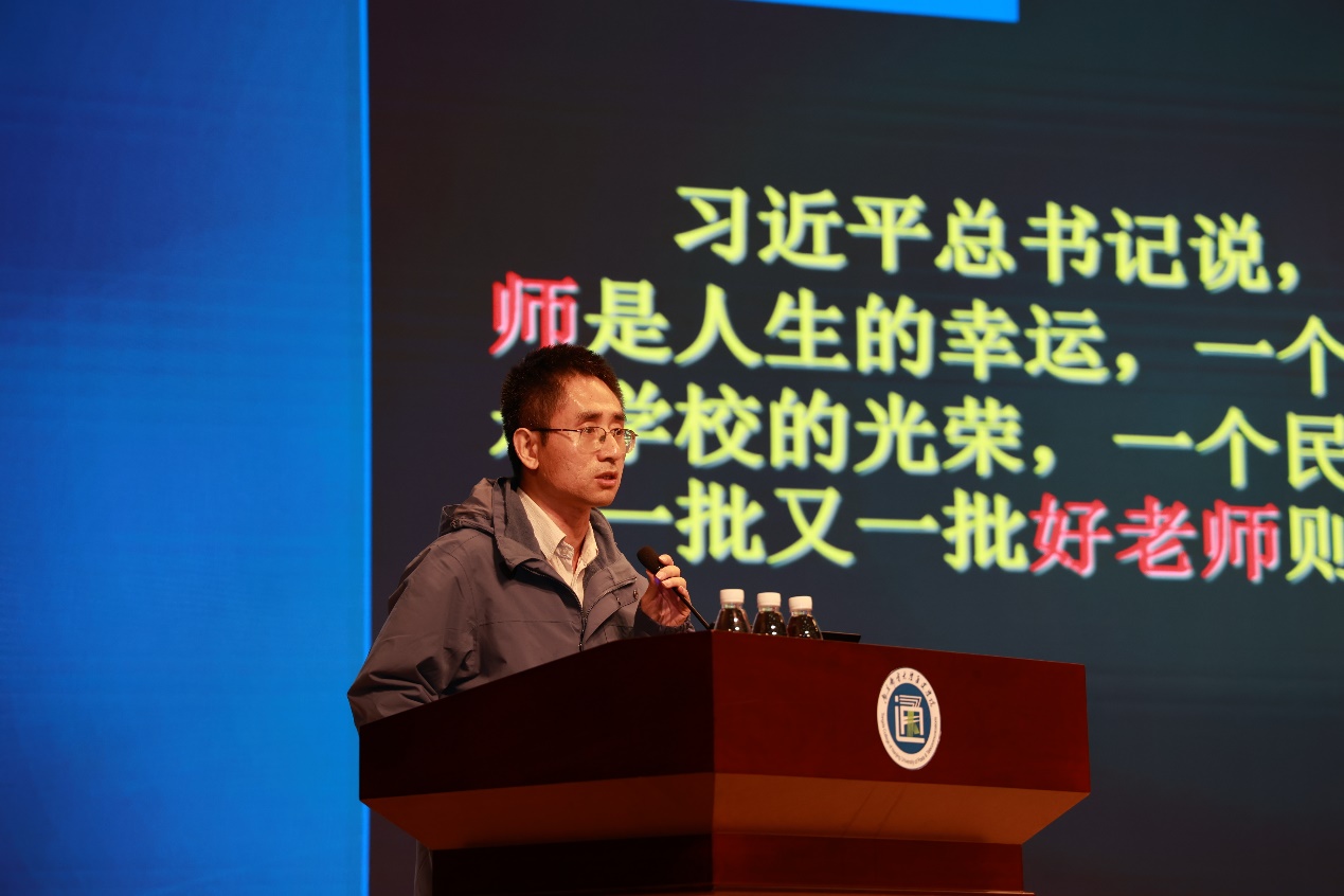 报告会上,williamhill官方网站首届“师德楷模”王娟教授、田友伟副教授、胡素君副教授依次登台宣讲。王娟教授谈了对高校教师职业的理解和认识,对教师、师德、师风的内涵进行了全面解读,她立足教学改革,对如何理解和实施课程思政进行了详细阐述,并分享了自己参加教学竞赛的心得体会。理学院田友伟副教授从严谨治学、关心学生、师徒结对、加强修养等方面阐述了对好老师的理解。他认为一名好老师要做到潜心育人、静心教书、努力科研、用心做事、真心待人。在谈及个人感悟时说:“我没有惊天动地的事业,只想用精彩的课堂书写人生梦想。我觉得教书育人是人生最大的快乐!园丁平凡,却是花园的播种者;埋头奉献,润物无声。”计算机学院、软件学院、网络空间安全学院胡素君副教授通过个人经历告诉大家立德树人要从教师自身做起,在课程中教学中融入思政元素,使价值塑造内生为课程教学中有机的、不可或缺的组成部分,通过课程教学改革将价值引领、知识传授、能力培养三者有机结合。她还分享了自己在混合式课程建设和教学改革实践中的感悟。三位“师德楷模”的精彩宣讲赢得了阵阵掌声。