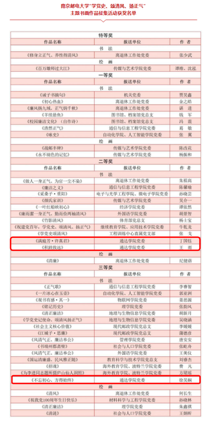 威廉希尔官网历来高度重视校园廉洁文化建设,形成了党政齐抓共管、纪委统筹协调、相关部门协同配合的联动工作机制,多措并举深入推动廉洁教育向实处做、往深里走、到心田去。在“廉洁清风劲、扬帆新征程”新生主题廉洁教育活动中,威廉希尔官网以“重廉·学廉·树廉”为导向,以“五个一”主题活动为抓手,聚力、发力、合力,多维度、立体化开展新生主题廉洁教育,有效实现了对全院3000余名新生的全覆盖,获评“优秀组织奖”。在“学党史悟思想、促廉洁强自律”专题知识竞赛中,计算机工程学院唐启林同学(20630614)、商学院程晨同学(20550218)代表学院参赛,积极备考、沉着应对,以均分第二的成绩获评团体二等奖。在“学党史、颂清风、扬正气”主题书画作品征集活动中,全院师生积极参与、热情响应,共征集作品73件,评出一等奖5个、二等奖10个、三等奖20个。根据要求择优上报一等奖5件作品参加校赛,其中3件作品获奖:商学院丁国钰同学(21570318)创作的《满庭芳·许真君》、王雨同学(21540304)创作的《积跬致远》获评二等奖,商学院徐吴娴同学(18580122)创作的《不忘初心、方得始终》获评三等奖。