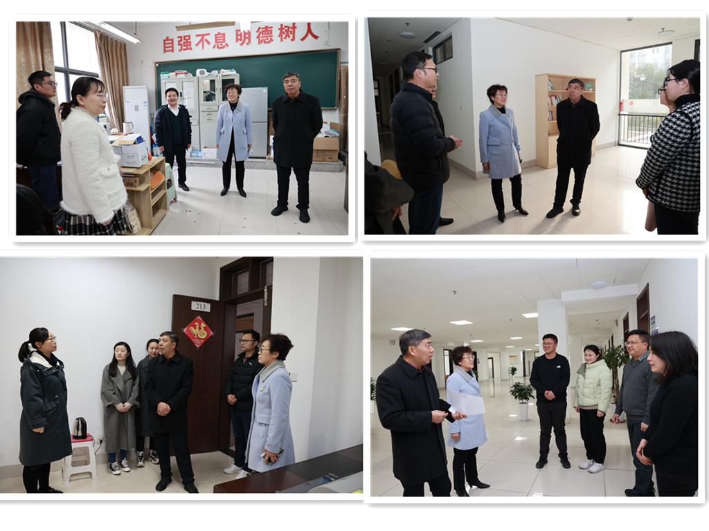 王院长、朱书记依次走访了学院各部门、单位每到一处,院领导与各部门单位负责人亲切交流,详细询问了机构设置、人员组成、岗位分工、学生管理、办公条件、文化建设等相关情况。院领导表示将与全体教职工共同努力,持续提升学院办学水平,推动学院高质量发展。