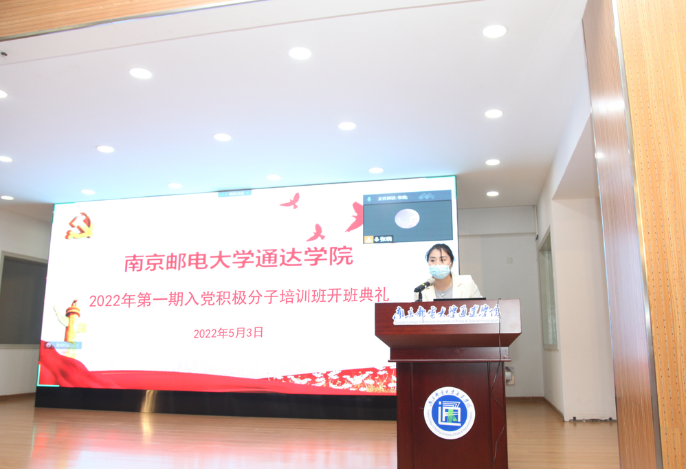 开班典礼在庄严的国歌声中拉开帷幕。随后,张晓老师向学员介绍本期入党积极分子培训班的具体安排和注意事项; 2020级通信工程专业丁馨雨同学代表全体培训班学员作了表态发言。