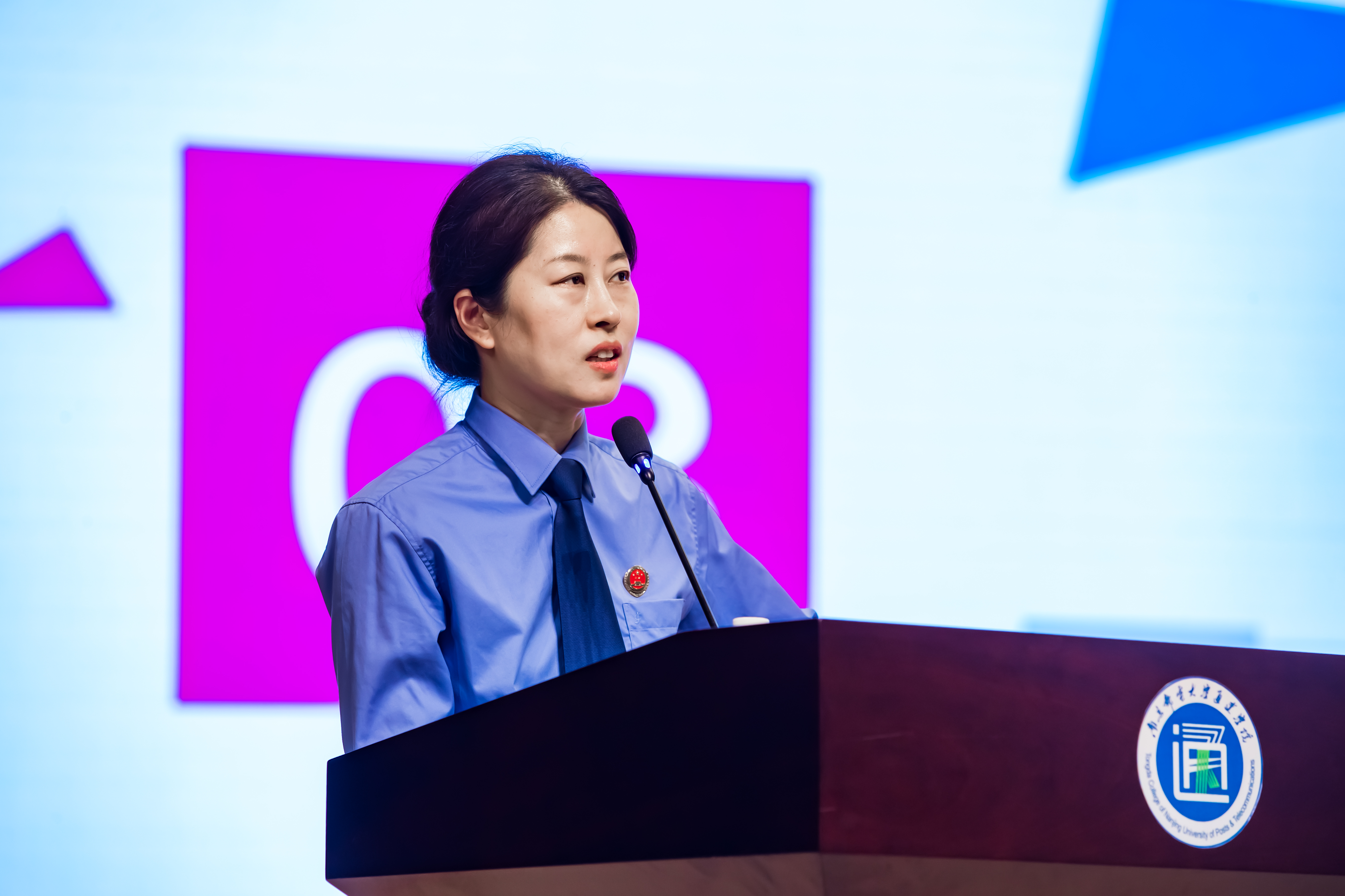 扬州市经济技术开发区人民检察院党组书记、检察长王珺子作《不作“工具人”,我们都是“反诈”普法宣传员》主题报告。王检察长通过介绍五个典型案例,播放《青春无“诈”》微电影,形象生动地向同学们讲解了什么是电信网络诈骗、常见的电信网络诈骗类型有哪些、诈骗罪的主要适用法律解读等内容。