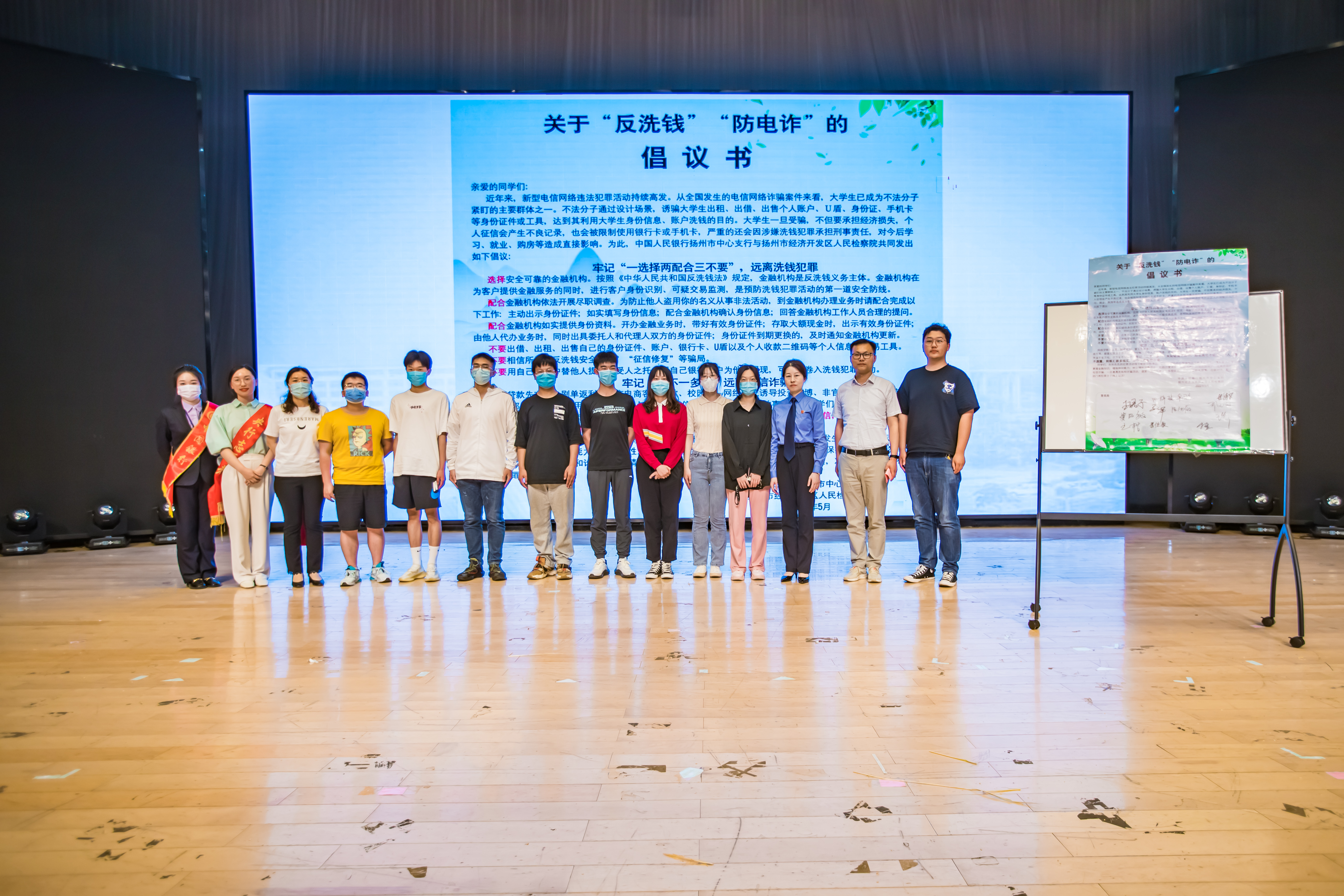 中国人民银行扬州市中心银行业务专家张心瑜通过分析公安部发布的2021年反诈数据,结合“杀猪盘”、网络刷单等典型校园电信诈骗案例向同学们介绍了当下防范网络电信诈骗的严峻形势,阐明了信息化时代下防范电诈的必要性。并与威廉希尔官网领导、检察院工作人员及学生代表共同在《关于“反洗钱”“反电诈”的倡议书》上签名。