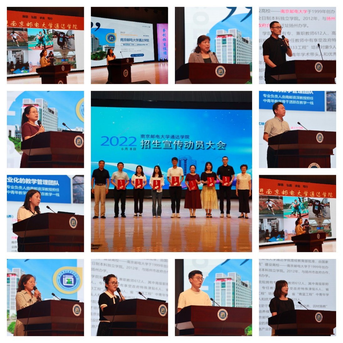 第二环节,来自江苏省内13个宣传组的教师代表进行了“招生宣讲大比武”,13位老师各出奇招、各具特色,充分展示了学院风采和个人魅力。最终,苏州组李雪婷老师获最佳宣讲人,南京组王嘉怡、连云港组刘阳、淮安组杨燕、盐城组张璇、泰州组李敏、镇江组闫志龙等六位老师获优秀宣讲人。