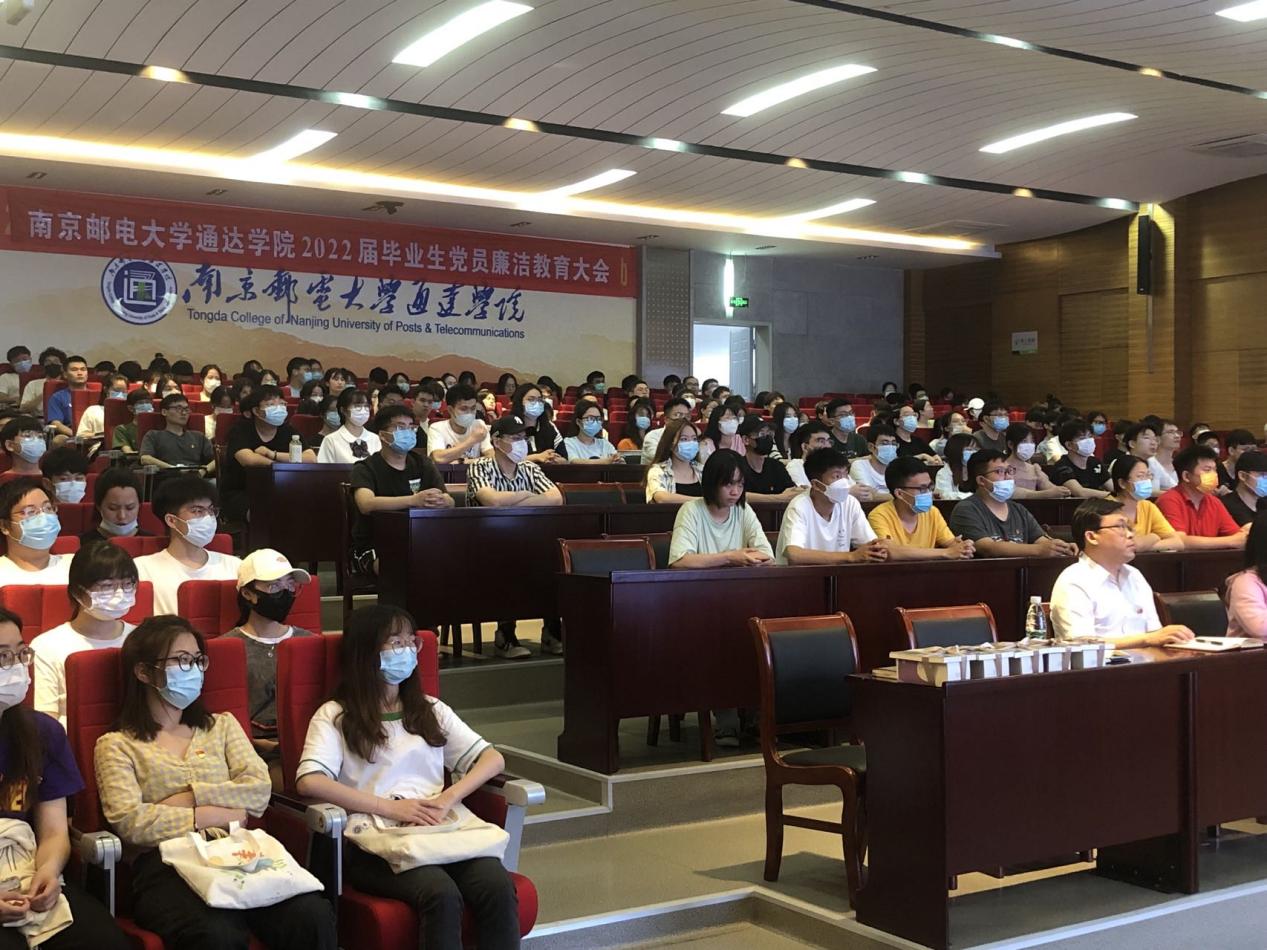 6月9日晚,威廉希尔官网在一号实验楼报告厅召开2022届毕业生党员廉洁教育大会。学院纪委书记张建波,纪委办公室、党委工作部负责人,2022届毕业生党员及2022年预备党员培训班学员参加会议,会议以线上线下相结合方式举行。会议由纪委办公室主任卞文献主持。